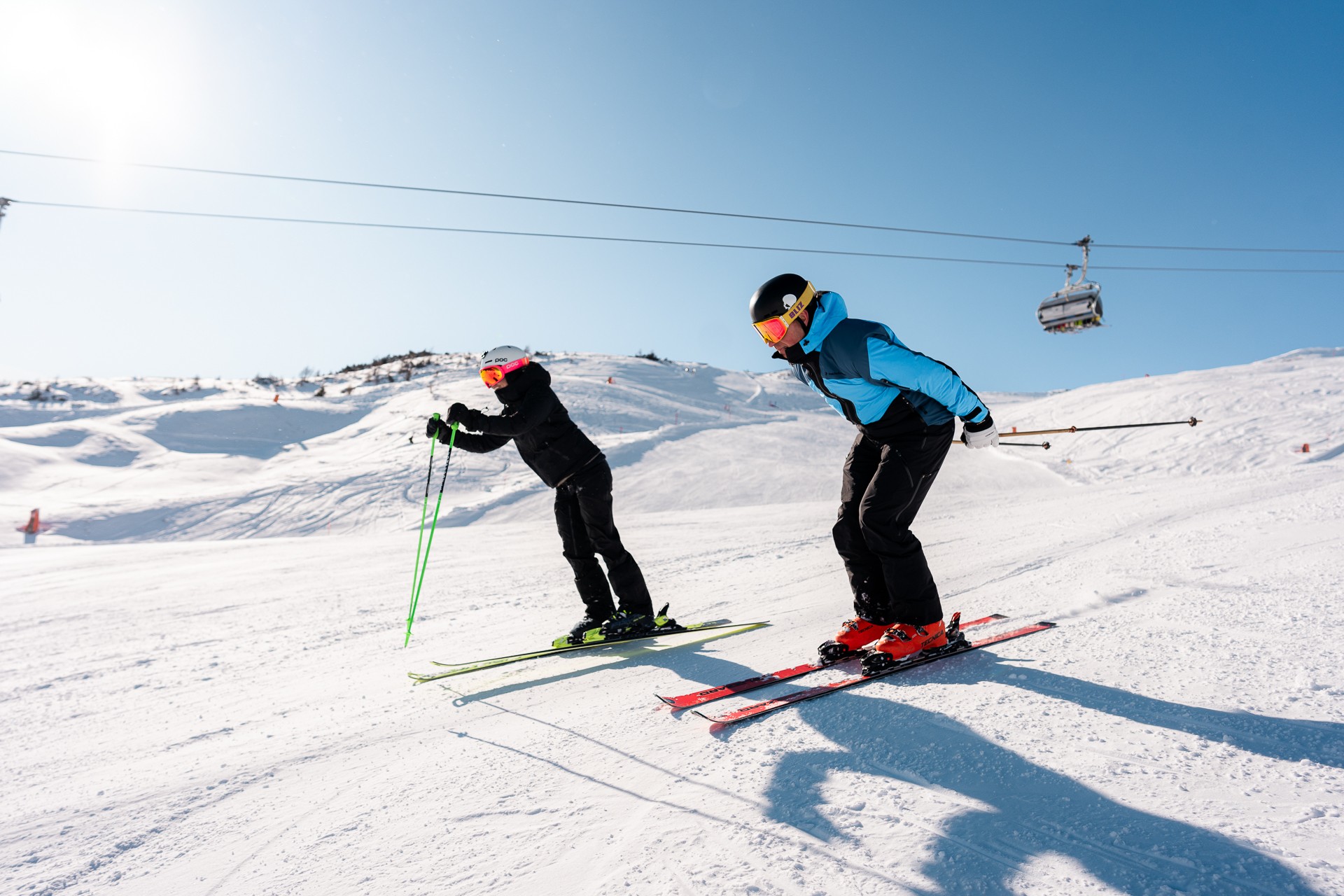 For beginners, there is a separate practice area at the top station of the gondola lift. The blue-marked sun run starts at the top station of the Panorama chairlift and leads from there back to the top station of the gondola lift.