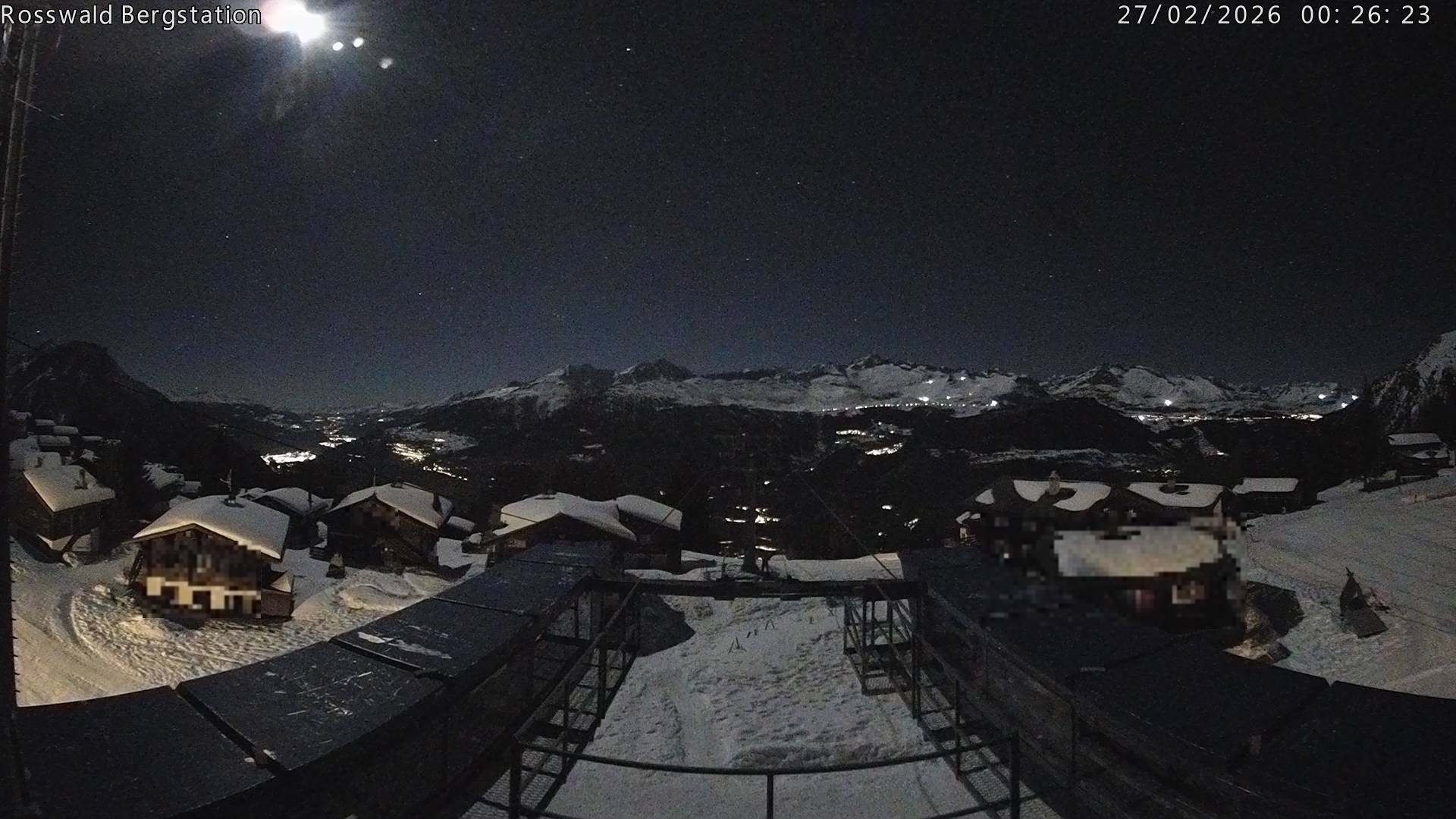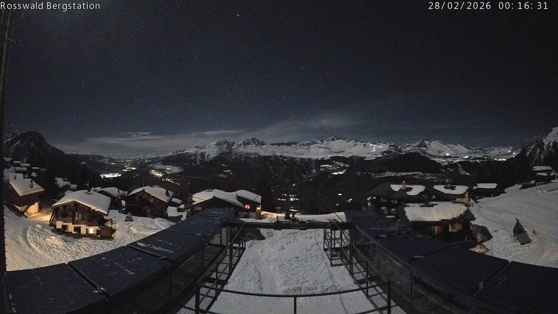 The webcam shows top station of cable car Rosswald in swiss ski resort Rosswald, located in region Valais.