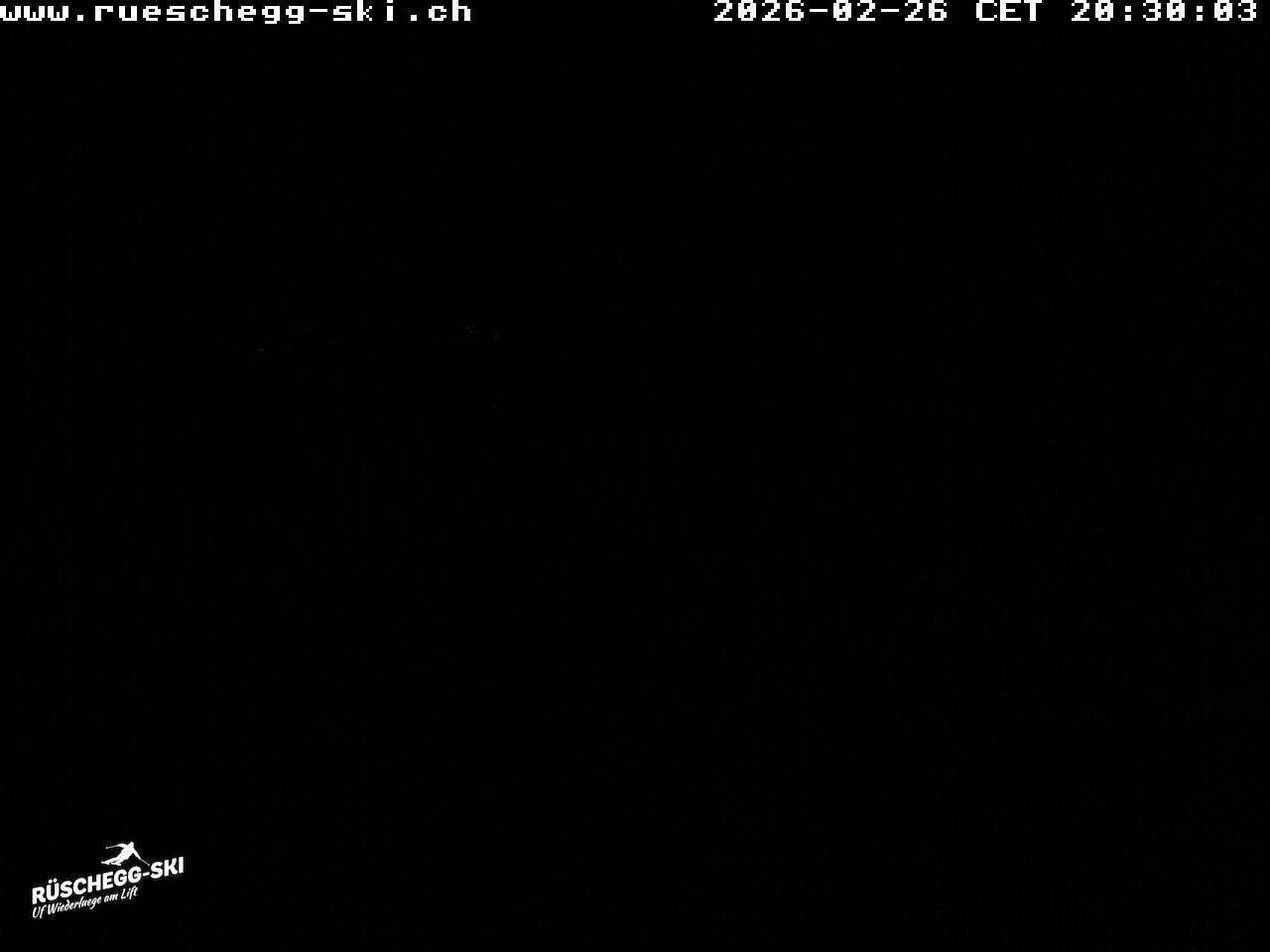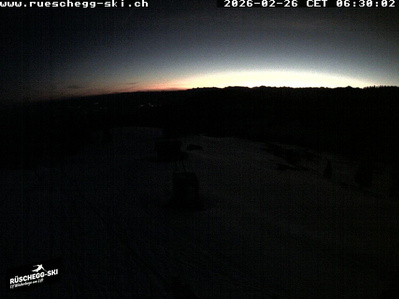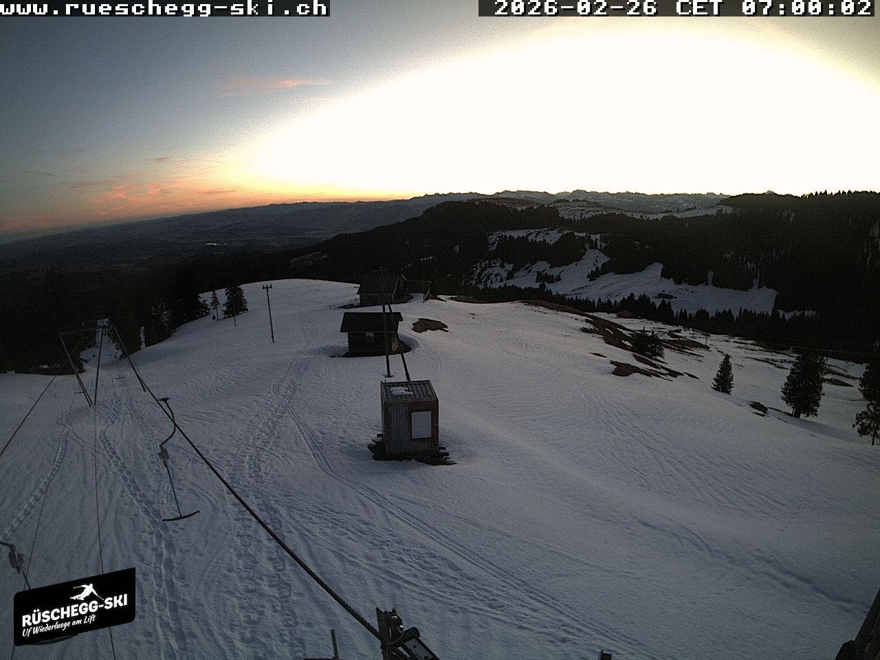Archived webcam image showing View at the upper station Lischboden / Ski resort Rüschegg on 26 Feb 2026 at 06:56 05:00