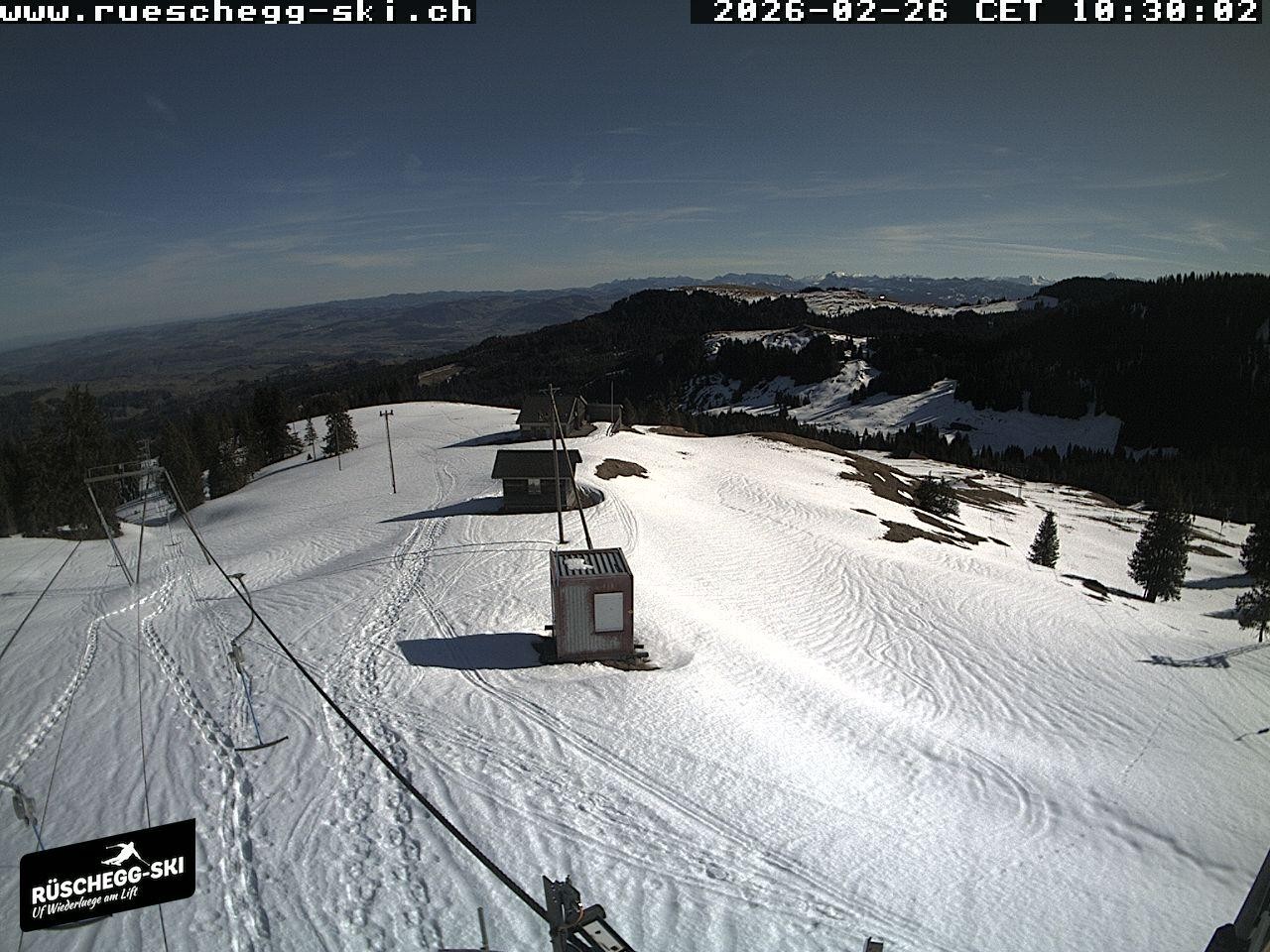 Archived webcam image showing View at the upper station Lischboden / Ski resort Rüschegg on 26 Feb 2026 at 10:56 09:00