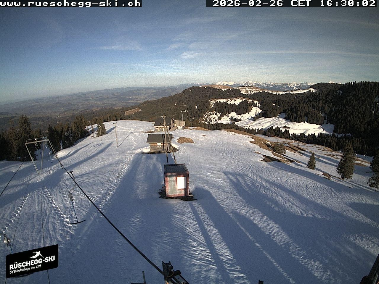 Archived webcam image showing View at the upper station Lischboden / Ski resort Rüschegg on 26 Feb 2026 at 16:56 Latest