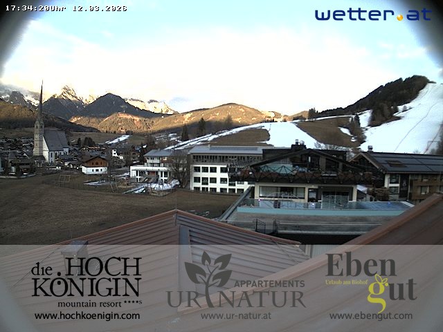 Archived webcam image showing Maria Alm - Webcam Resort Hochkönigin on 13 Mar 2026 at 18:37 17:00