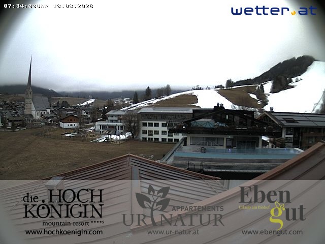 Archived webcam image showing Maria Alm - Webcam Resort Hochkönigin on 13 Mar 2026 at 07:37 06:00