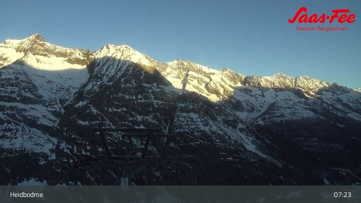 The webcam is located at the top station of the chairlift Heidbodme and thus at the highest point of the ski resort Saas-Almagell.