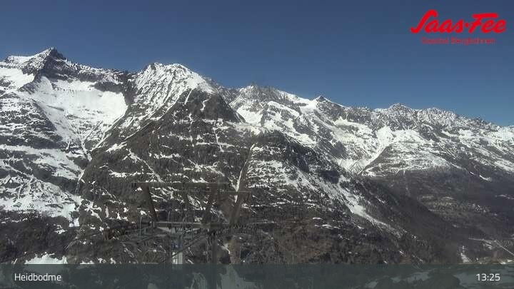 Archived webcam image showing Saas-Almagell: Top station Heidbodme on 9 Apr 2026 at 13:03 Latest