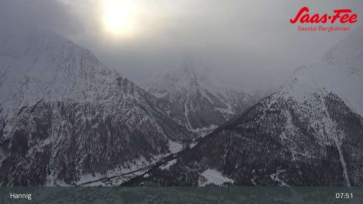 Archived webcam image showing Saas-Fee: Top station Hannig on 22 Mar 2026 at 07:26 06:00