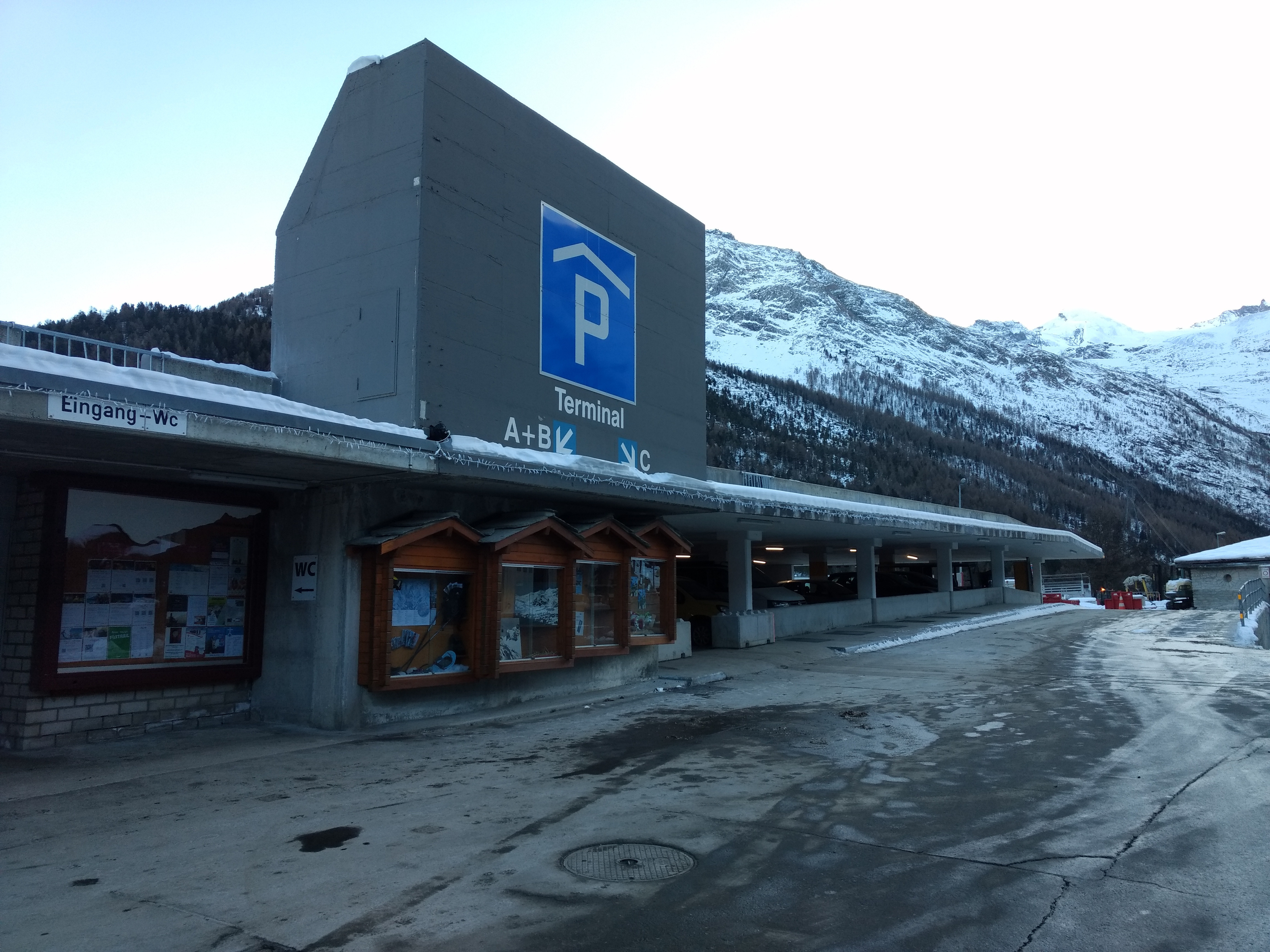 The first thing you should know about Saas-Fee is that the resort is car-free. If you arrive to Saas-Fee, you have to leave your car at the big parking garage at the entrance of the village. To get the luggage to the accommodation, they offer shuttle services. So in the terminals in the parking garage you can unload, call your hotel and then you will be picked up with small transport cars. With the guest card, the parking rate is reduced. There is also a shuttle bus that takes day guests from the parking lot to the valley station.