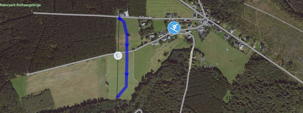Coming from Cologne take the A4 until exit 30 Krombach direction Krombach/Lennestadt/Kirchhundem/B54. Until Kirchenhundem you drive on the B517. In the village turn right onto Hundemstraße. In Würdinghausen turn left onto the K27. At the roundabout take the first exit onto Winterberger Straße and follow the B236 to Schmallenberg. Turn right and continue towards Grafschaft, where you turn right again to get to Schanze.