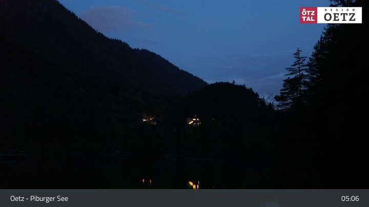 Archived webcam image showing Oetztal: View Lake Piburg on 28 Apr 2026 at 03:36 02:00