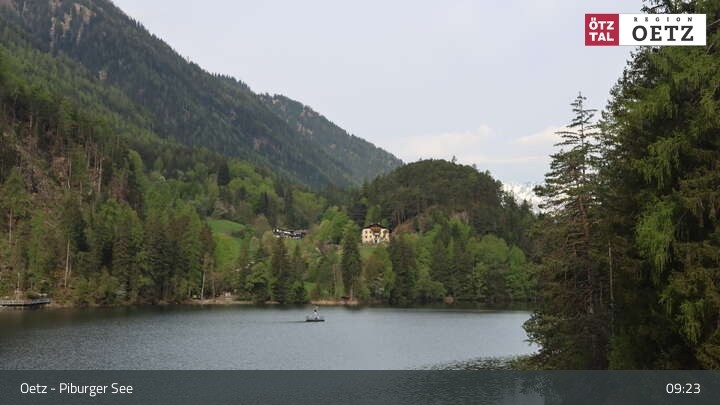 Archived webcam image showing Oetztal: View Lake Piburg on 28 Apr 2026 at 09:36 08:00
