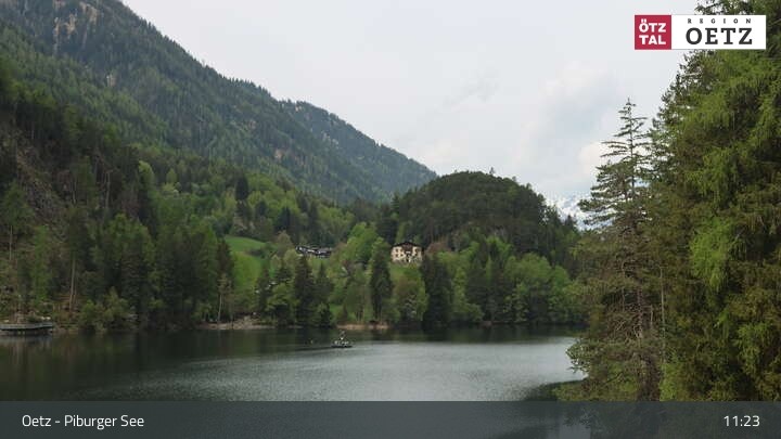 Archived webcam image showing Oetztal: View Lake Piburg on 28 Apr 2026 at 11:36 10:00