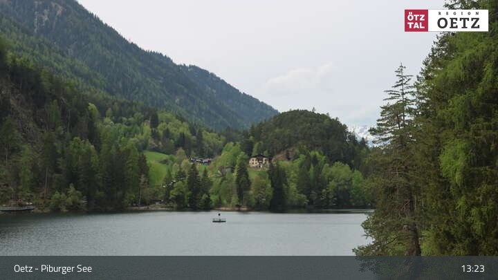 Archived webcam image showing Oetztal: View Lake Piburg on 28 Apr 2026 at 13:36 12:00