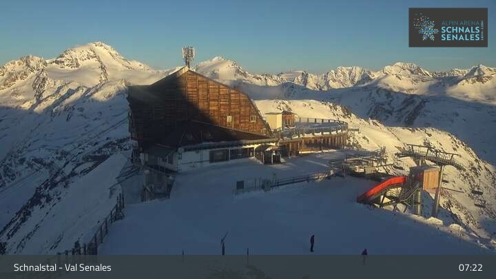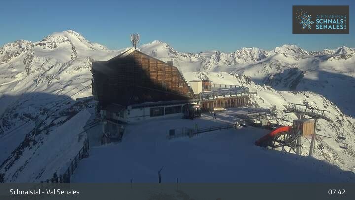 Archived webcam image showing Schnalstal: Top Station Gletscherbahn on 26 Feb 2026 at 08:14 07:00