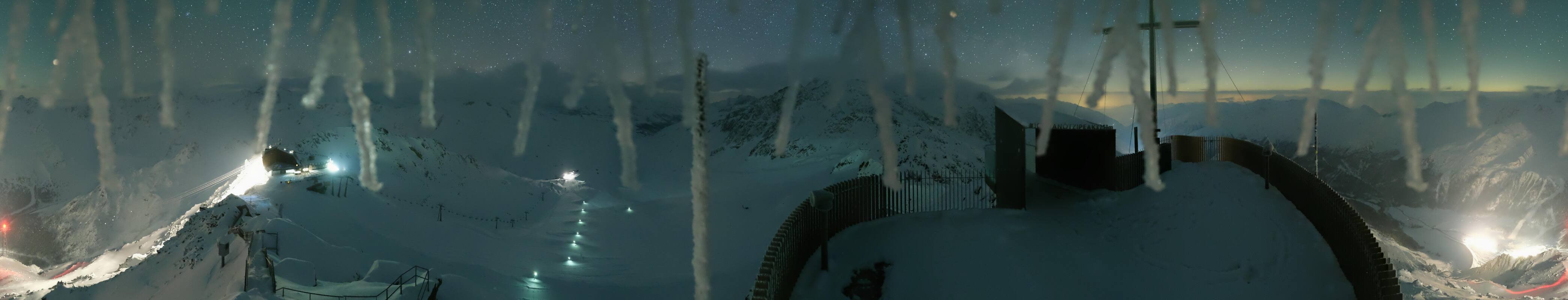 The webcam is located at the viewing platform Iceman Ötzi Peak on the Grawand peak and offers a great view of the mountain station of the Grawand chairlift and the slopes on the Val Senales Glacier.