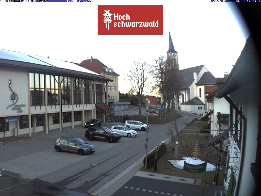 Archived webcam image showing Town hall and church, Schoenwald on 26 Feb 2026 at 18:53 Latest