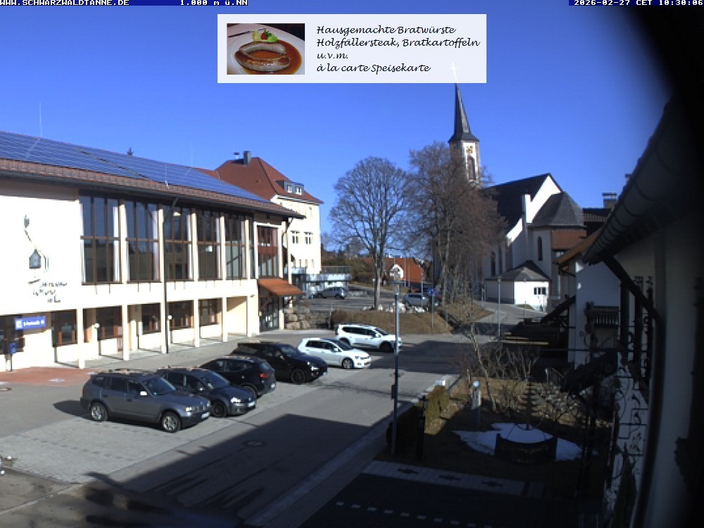 Archived webcam image showing Town hall and church, Schoenwald on 26 Feb 2026 at 10:53 09:00