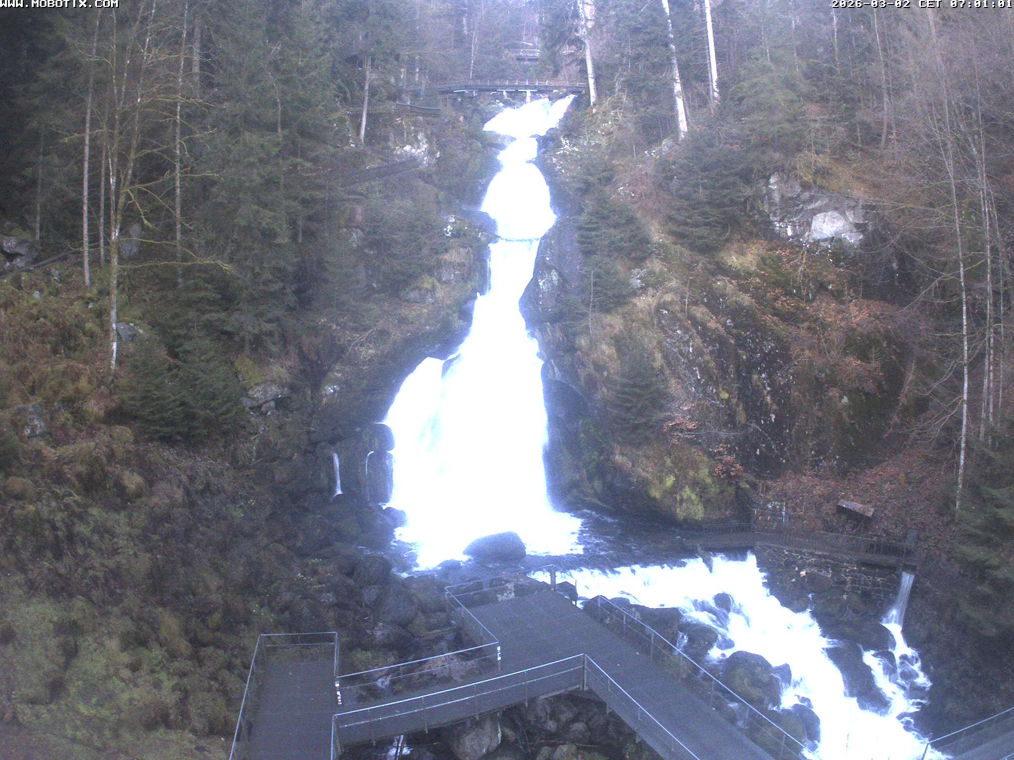 Archived webcam image showing Waterfall in Triberg on 2 Mar 2026 at 07:39 06:00