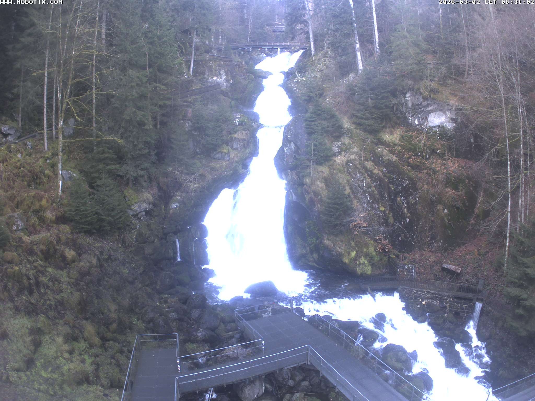 Archived webcam image showing Waterfall in Triberg on 2 Mar 2026 at 08:39 07:00