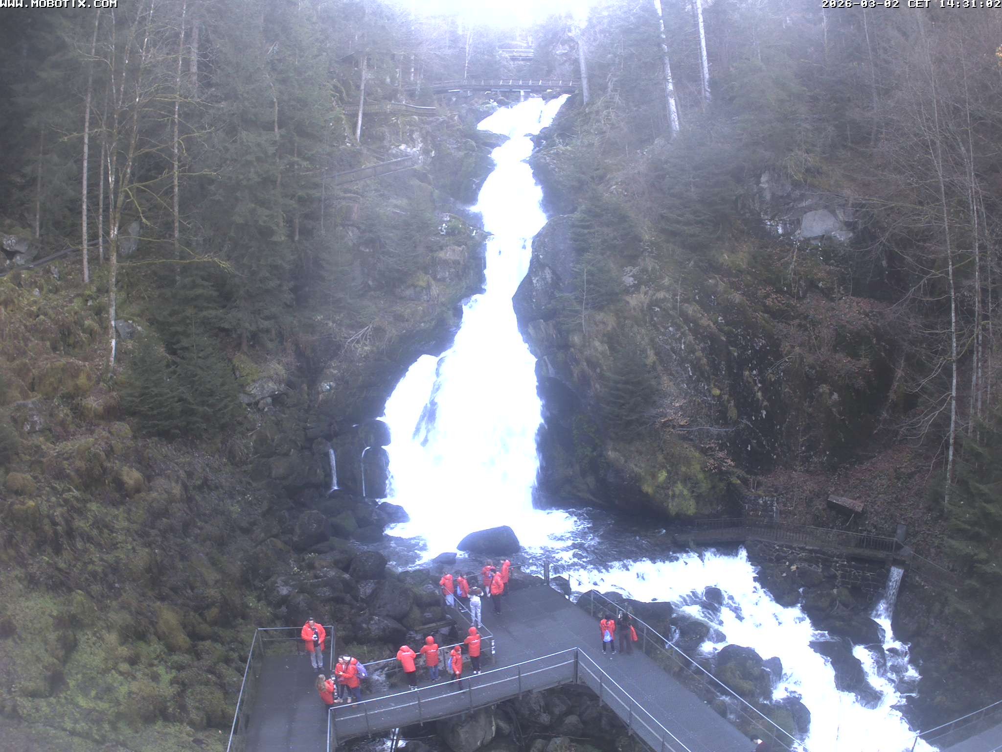 Archived webcam image showing Waterfall in Triberg on 2 Mar 2026 at 14:39 13:00