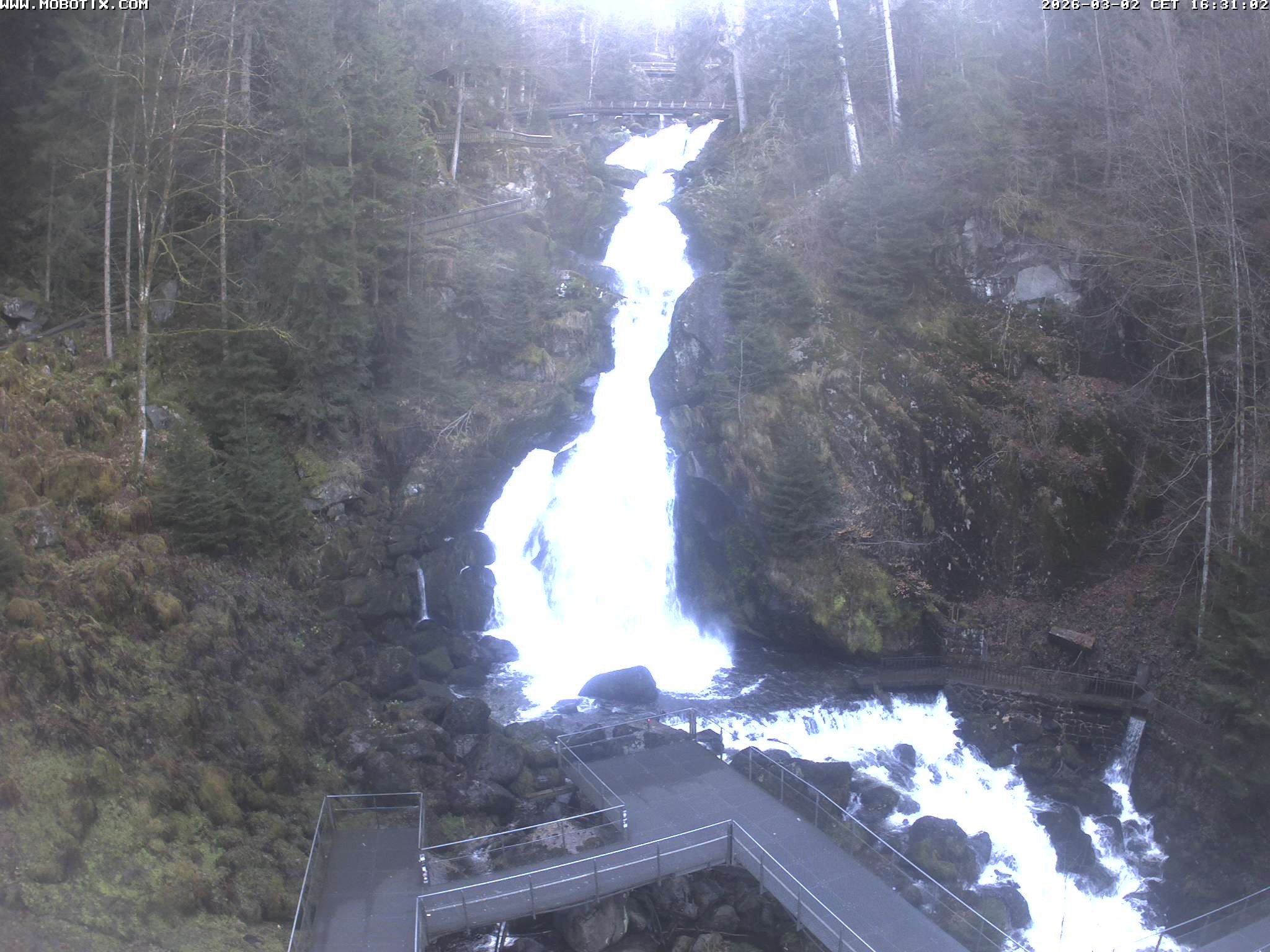 Archived webcam image showing Waterfall in Triberg on 2 Mar 2026 at 16:39 15:00