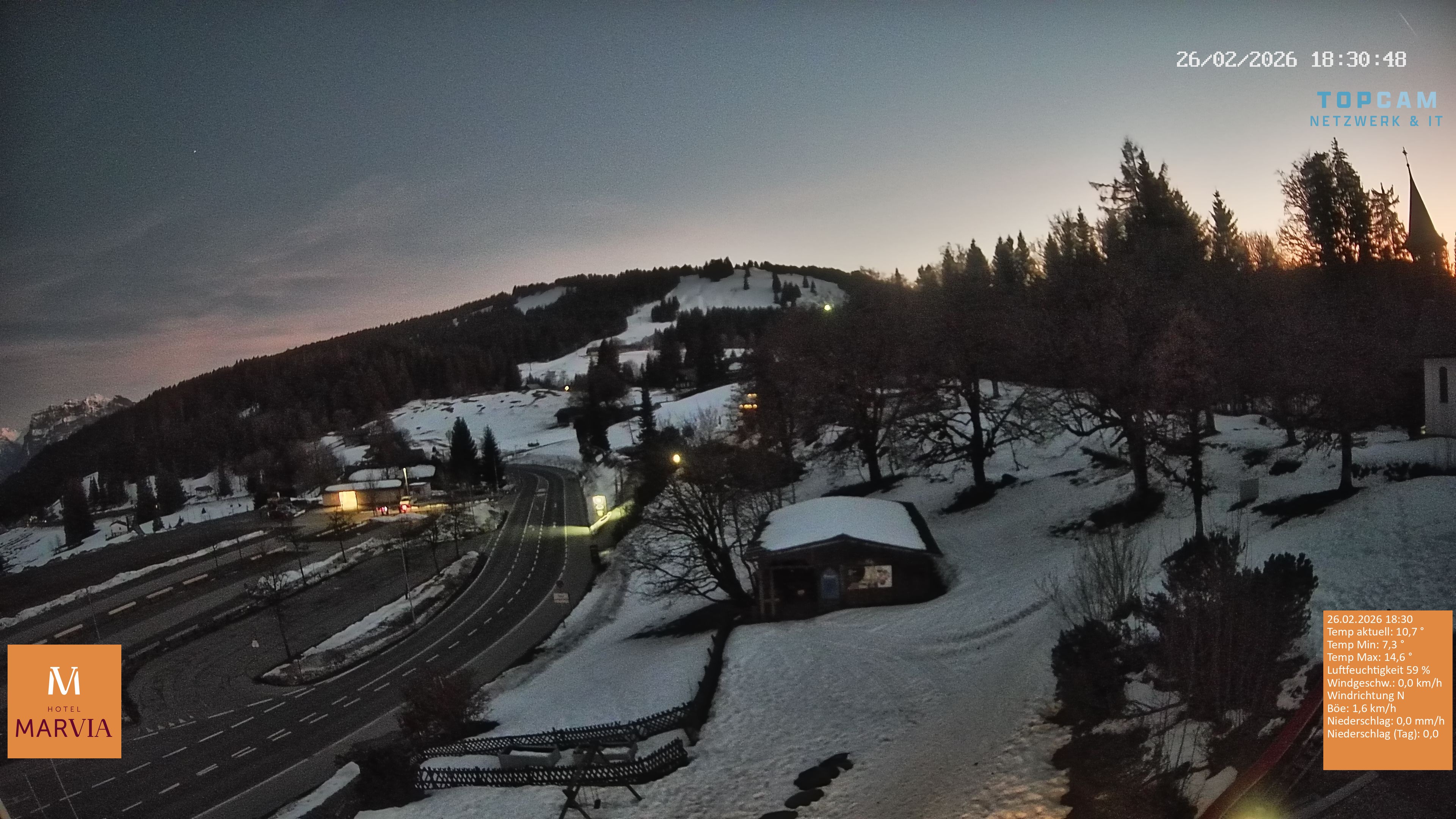 Archiviertes Webcam Bild: Blick vom Berghof Fetz in Bödele am 26 Feb 2026 um 18:36 Uhr Latest