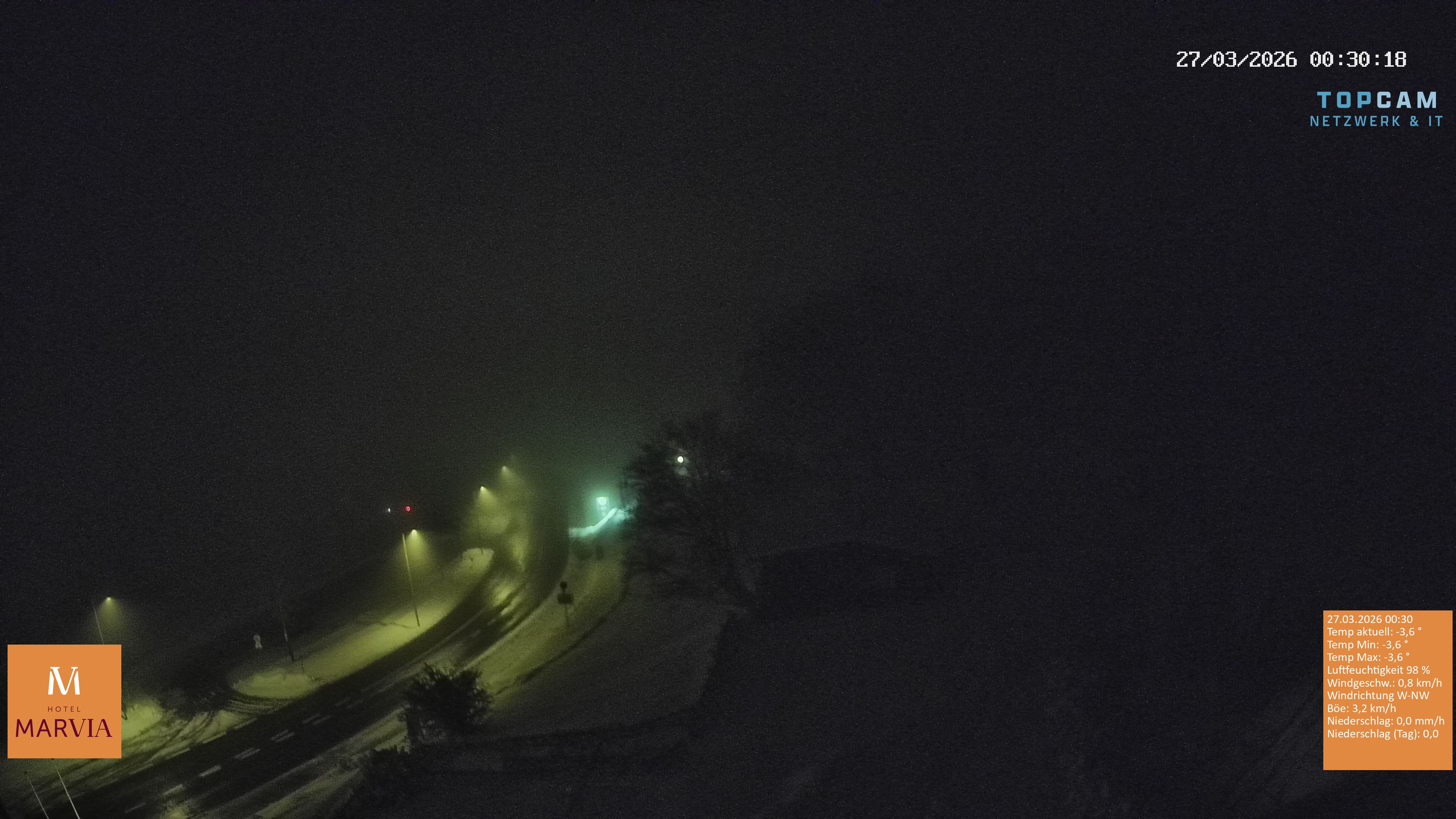 Archived webcam image showing Bödele: View from restaurant Fetz on 27 Mar 2026 at 00:12 23:00