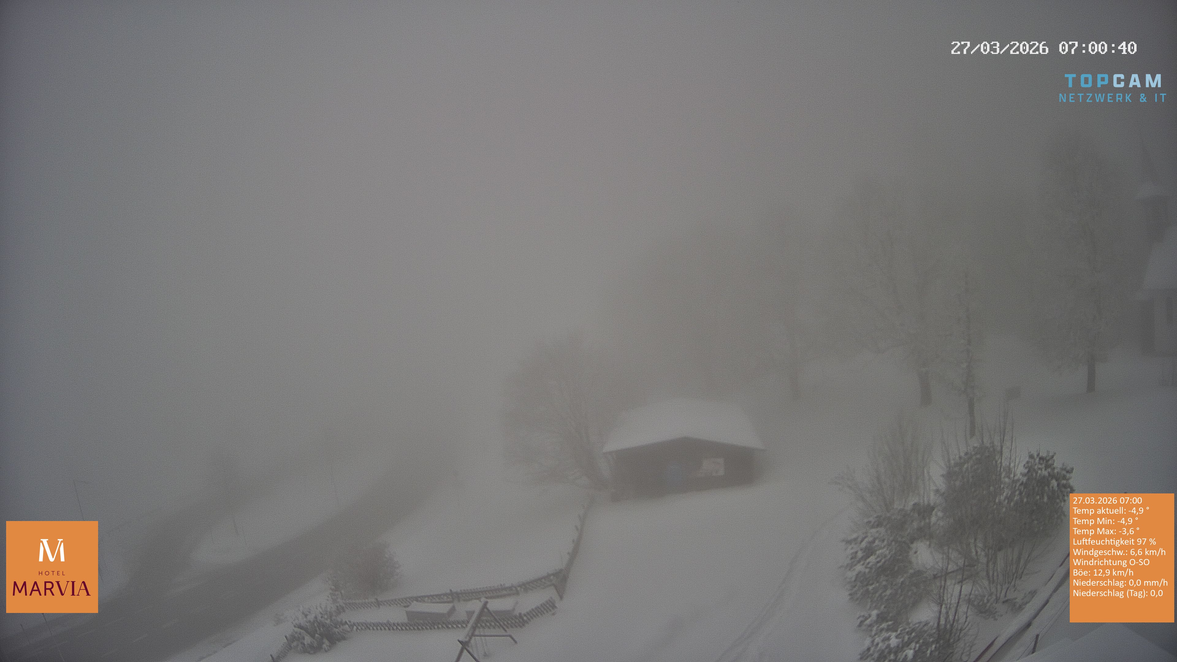 Archived webcam image showing Bödele: View from restaurant Fetz on 27 Mar 2026 at 07:12 06:00