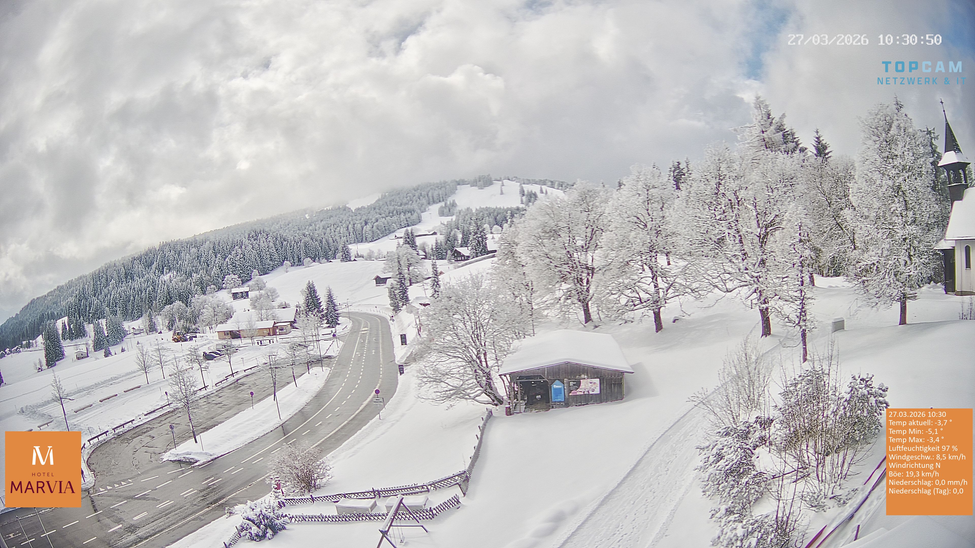 Archived webcam image showing Bödele: View from restaurant Fetz on 27 Mar 2026 at 10:12 Latest