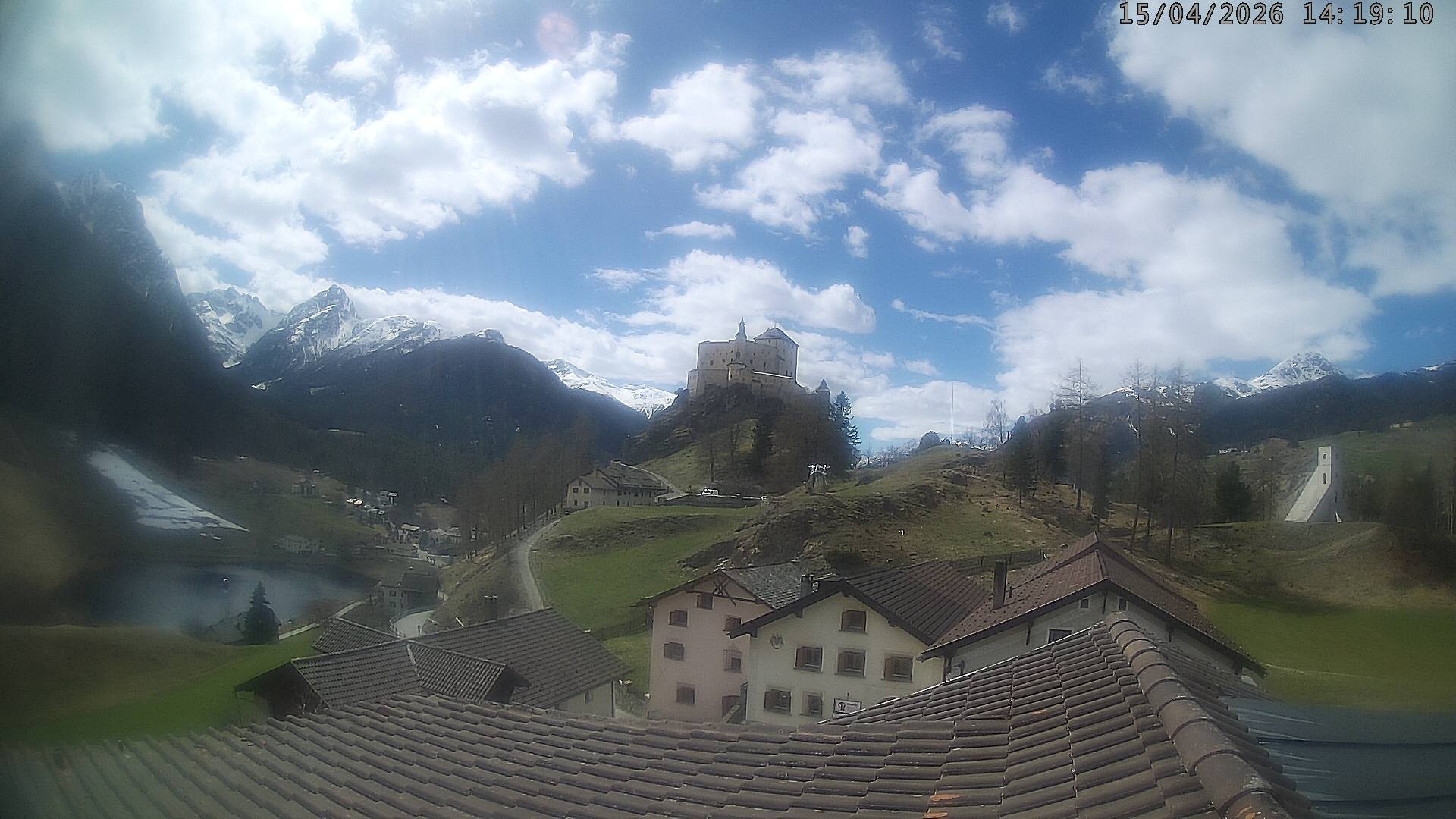 Archived webcam image showing Tarasp Castle on 15 Apr 2026 at 14:04 13:00