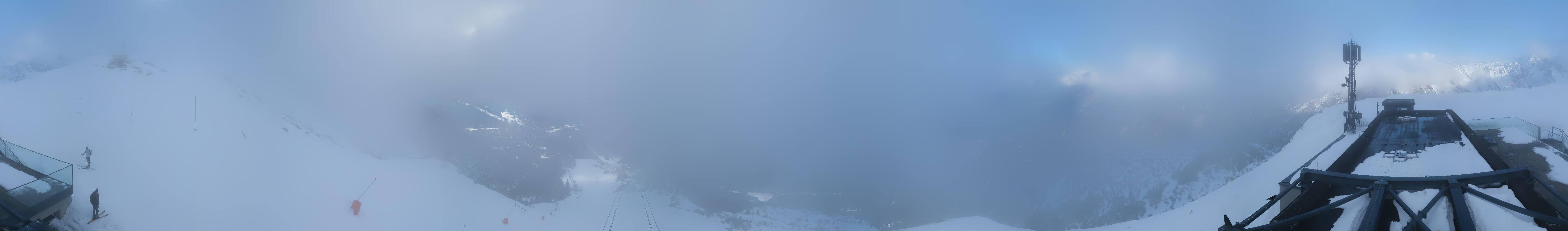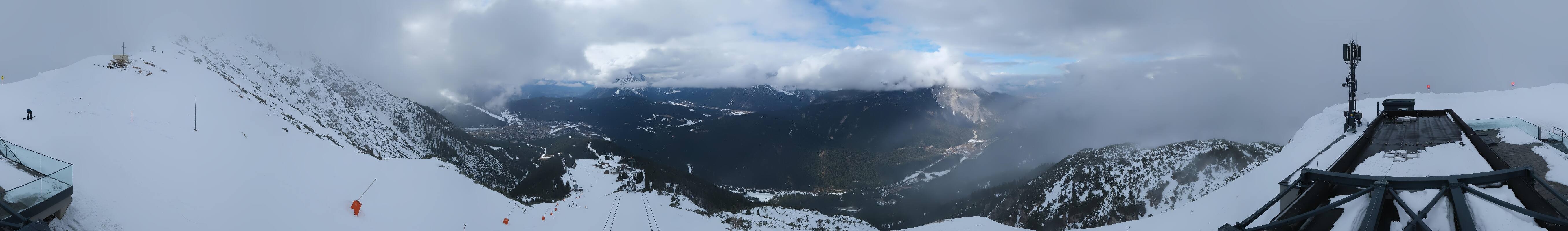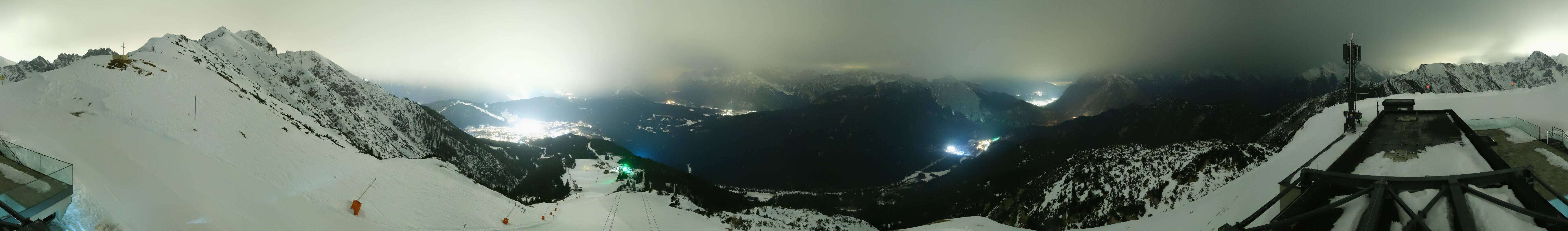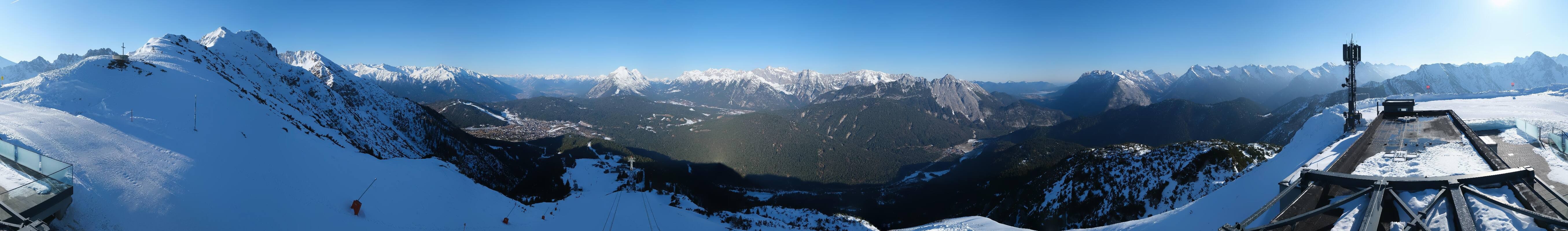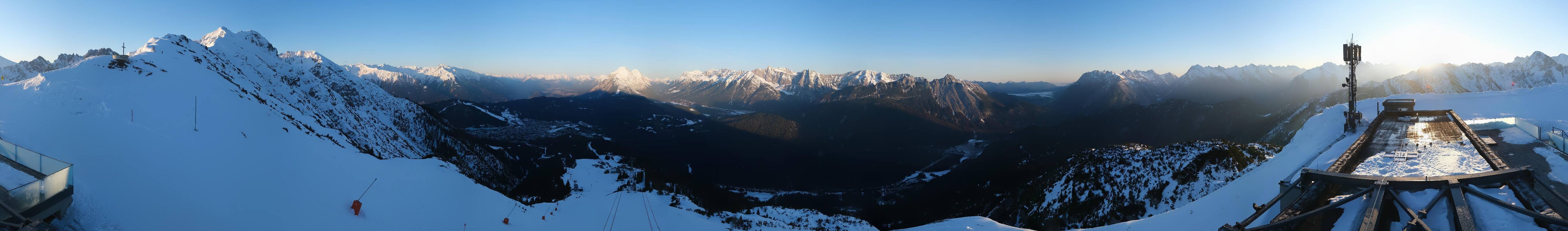 Enjoy the panoramic view from the top station at Seefelder Joch in the Rosshütte ski area down into the valley to Seefeld in Tyrol. In addition to the Seefelder Jochbahn, you can also see the Jochlift and the Rosshütten-Express chairlift.