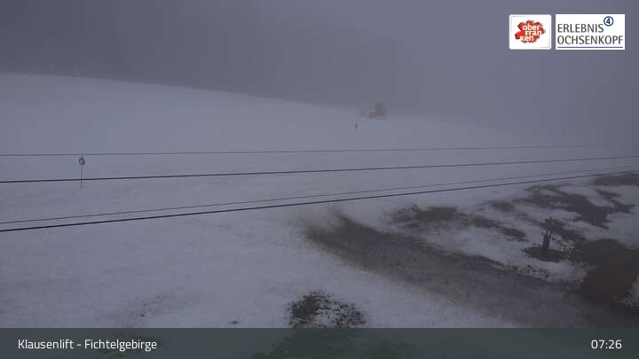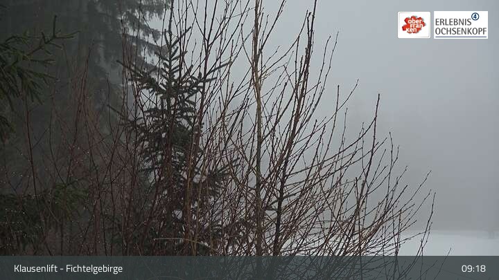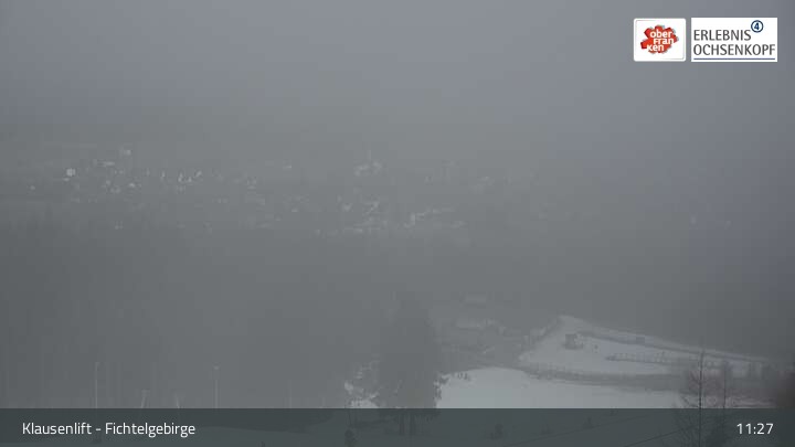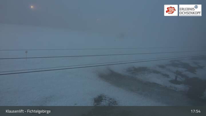 The webcam is located at the Klausen lifts in the Fichtelgebirge and looks over Mehlmeisel to Schneeberg and Ochsenkopf.