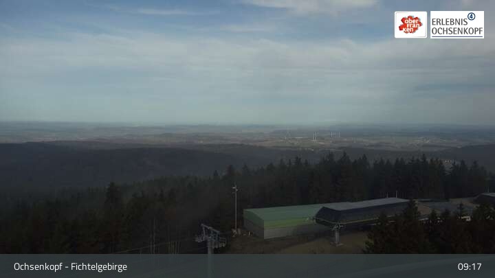 Archived webcam image showing Ochsenkopf mountain: transmission tower on 5 Apr 2026 at 09:10 08:00