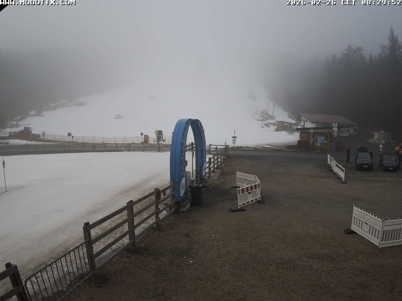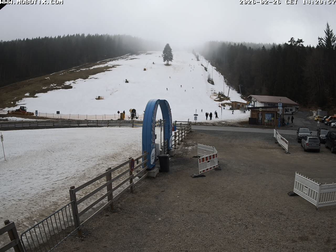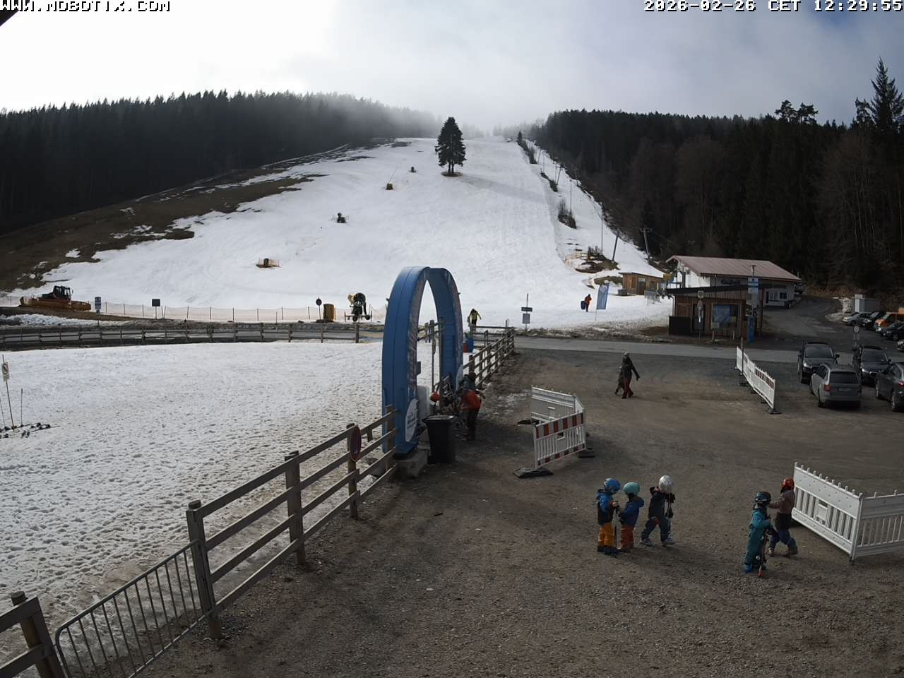 The webcam shows the parking area, two of the three ski lifts and the run at Mehlmeisel Klausenlifte.