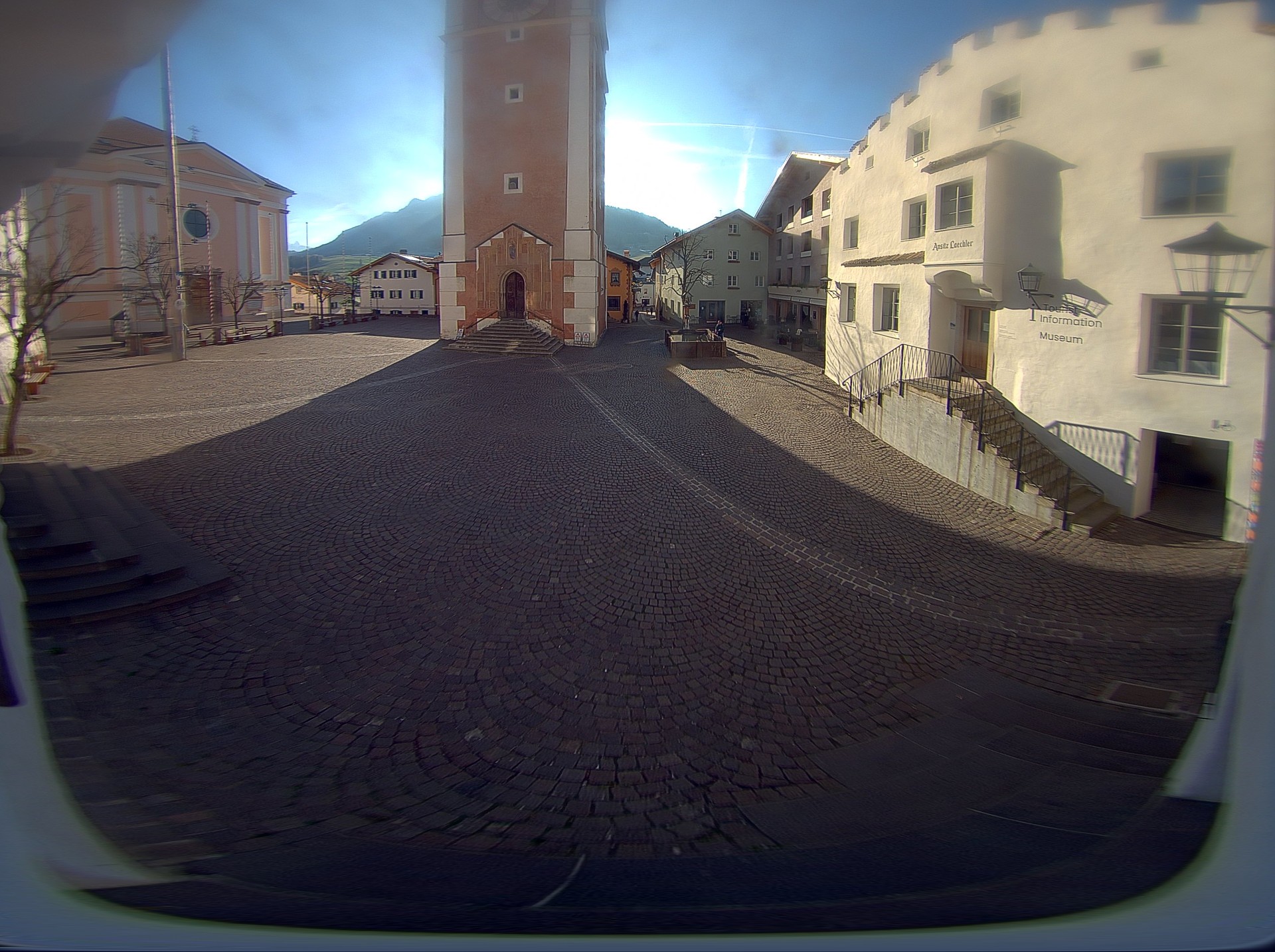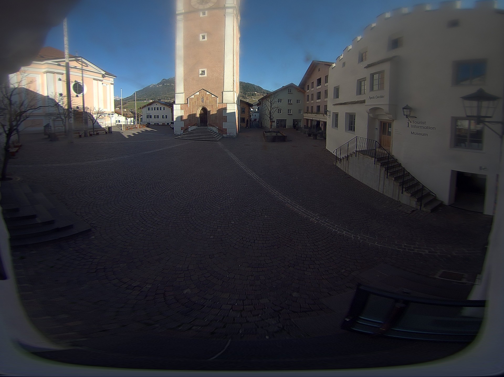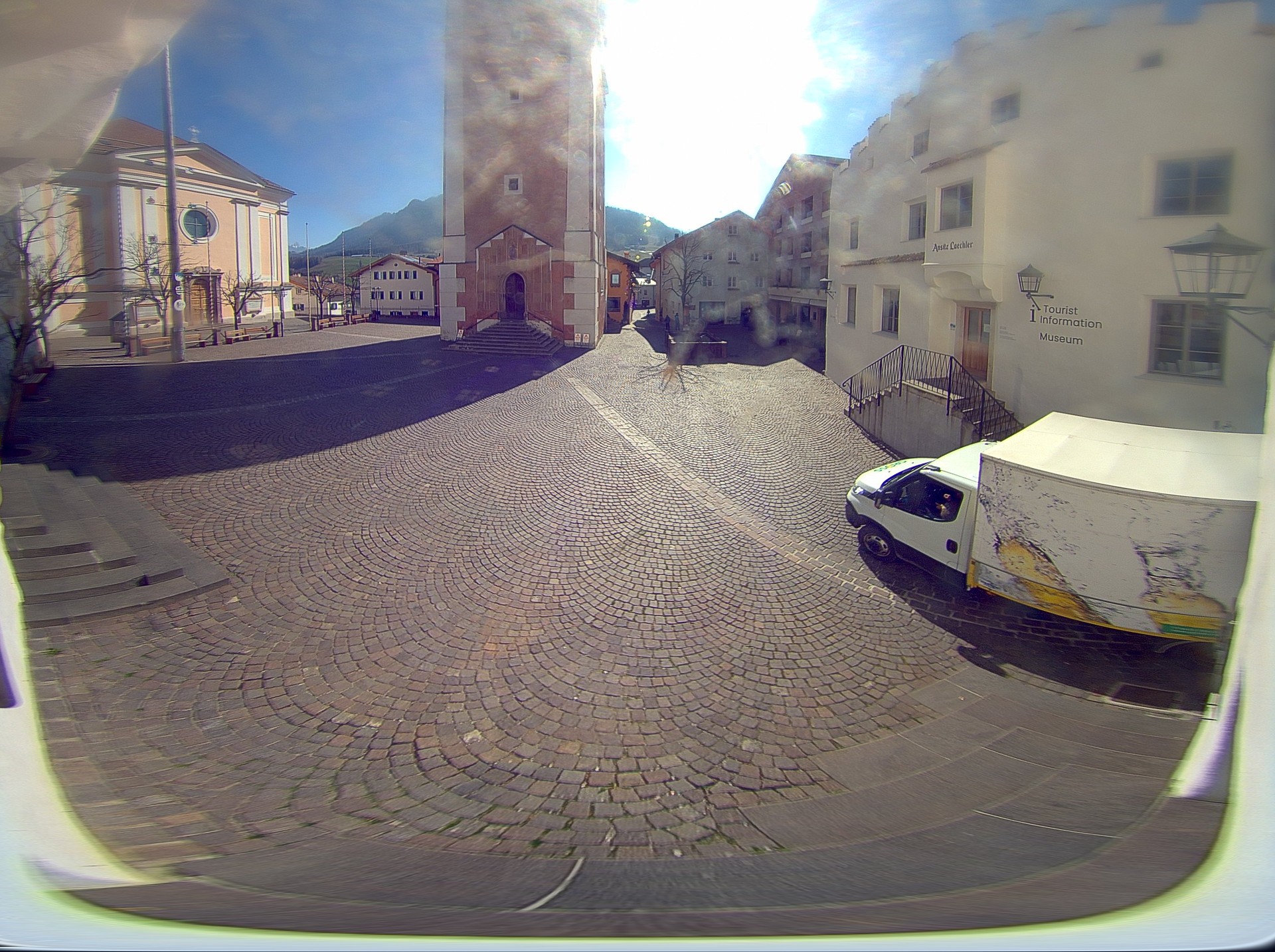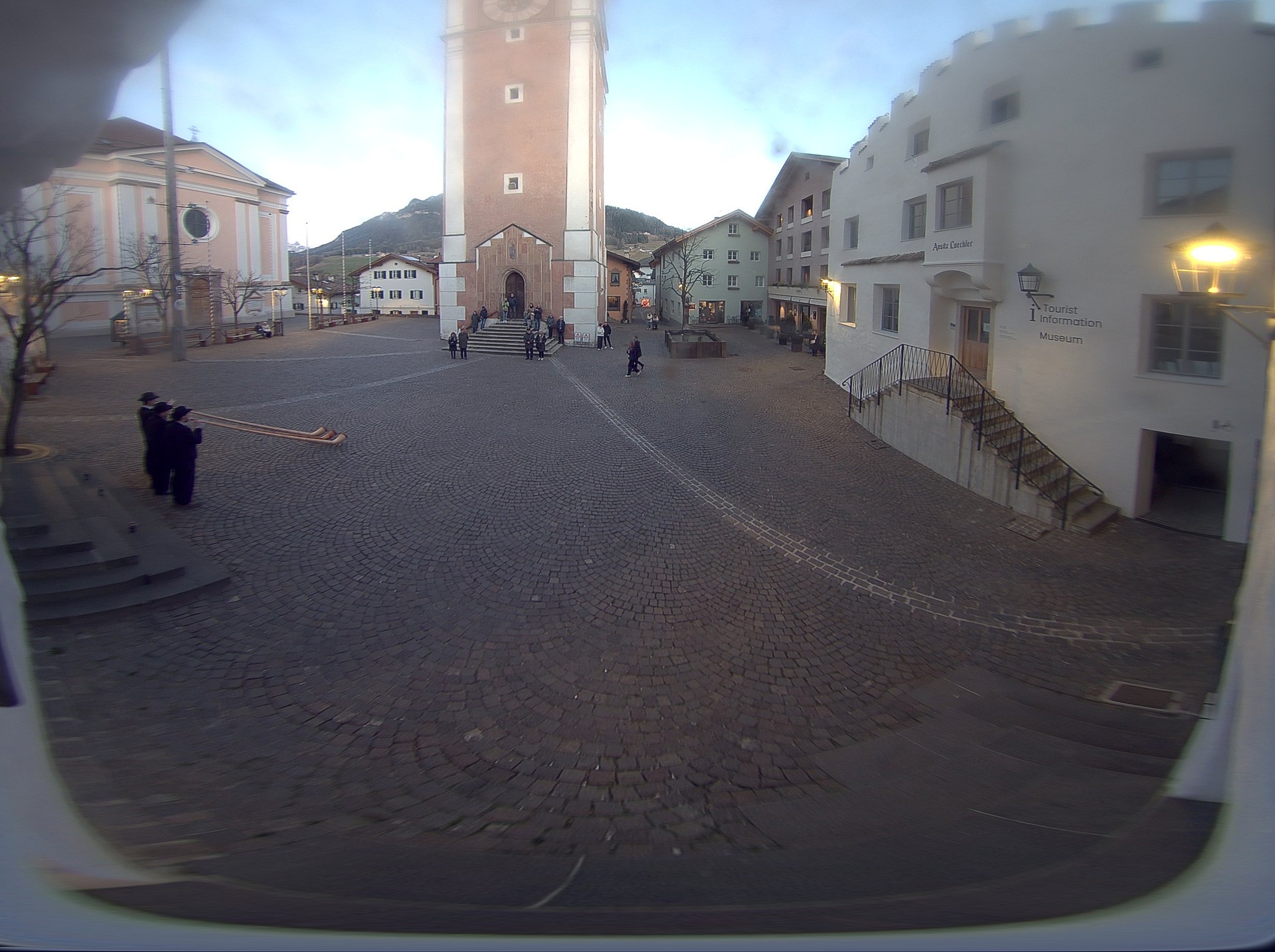 Archived webcam image showing Castelrotto/Kastelruth village square on 20 Mar 2026 at 07:59 06:00