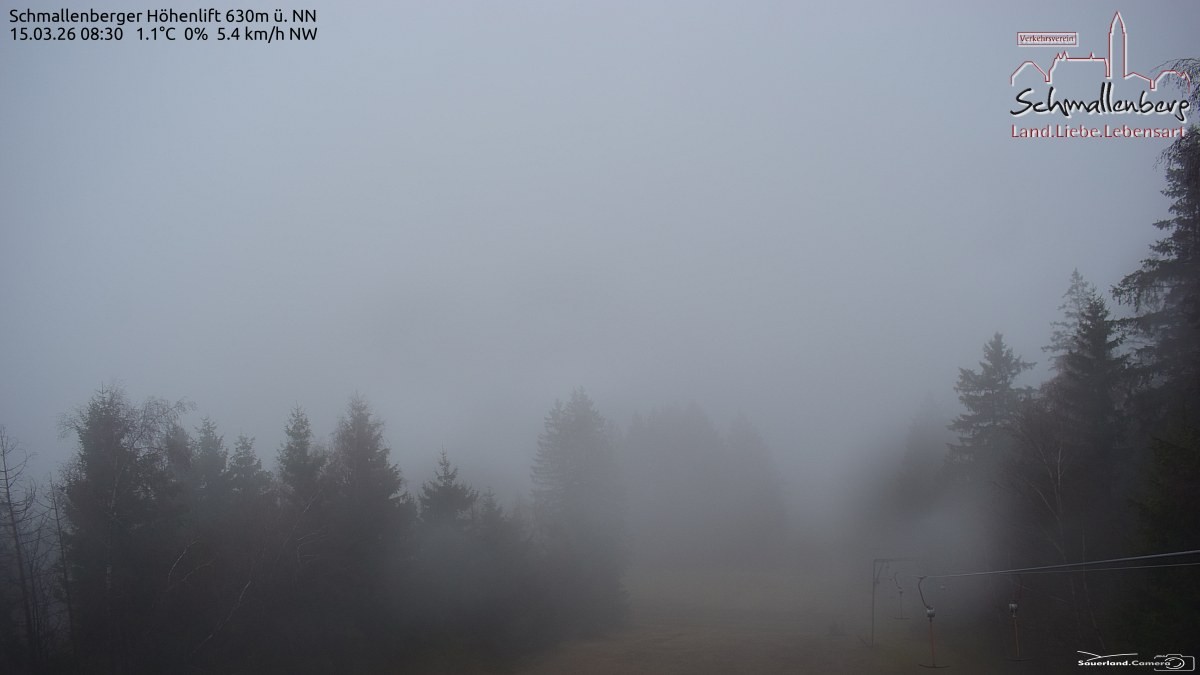 Archiviertes Webcam Bild: Schmallenberg: Höhenlift Bergstation am 15.03.2026 um 08:10 Uhr 08:00