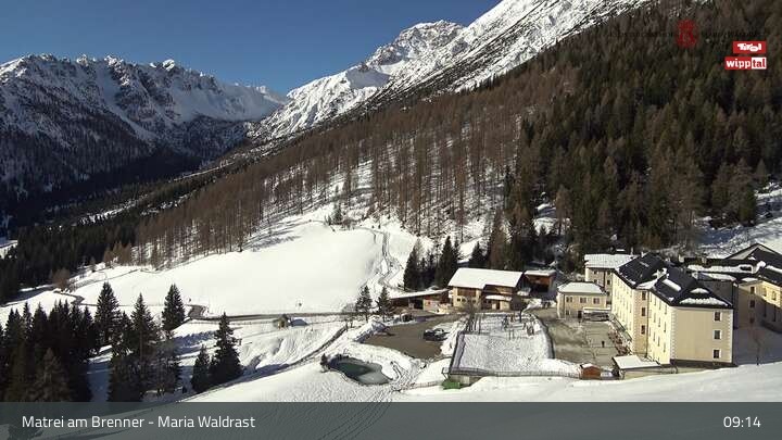 Archived webcam image showing Matrei am Brenner: Pilgrimage Maria Waldrast on 26 Feb 2026 at 09:10 08:00