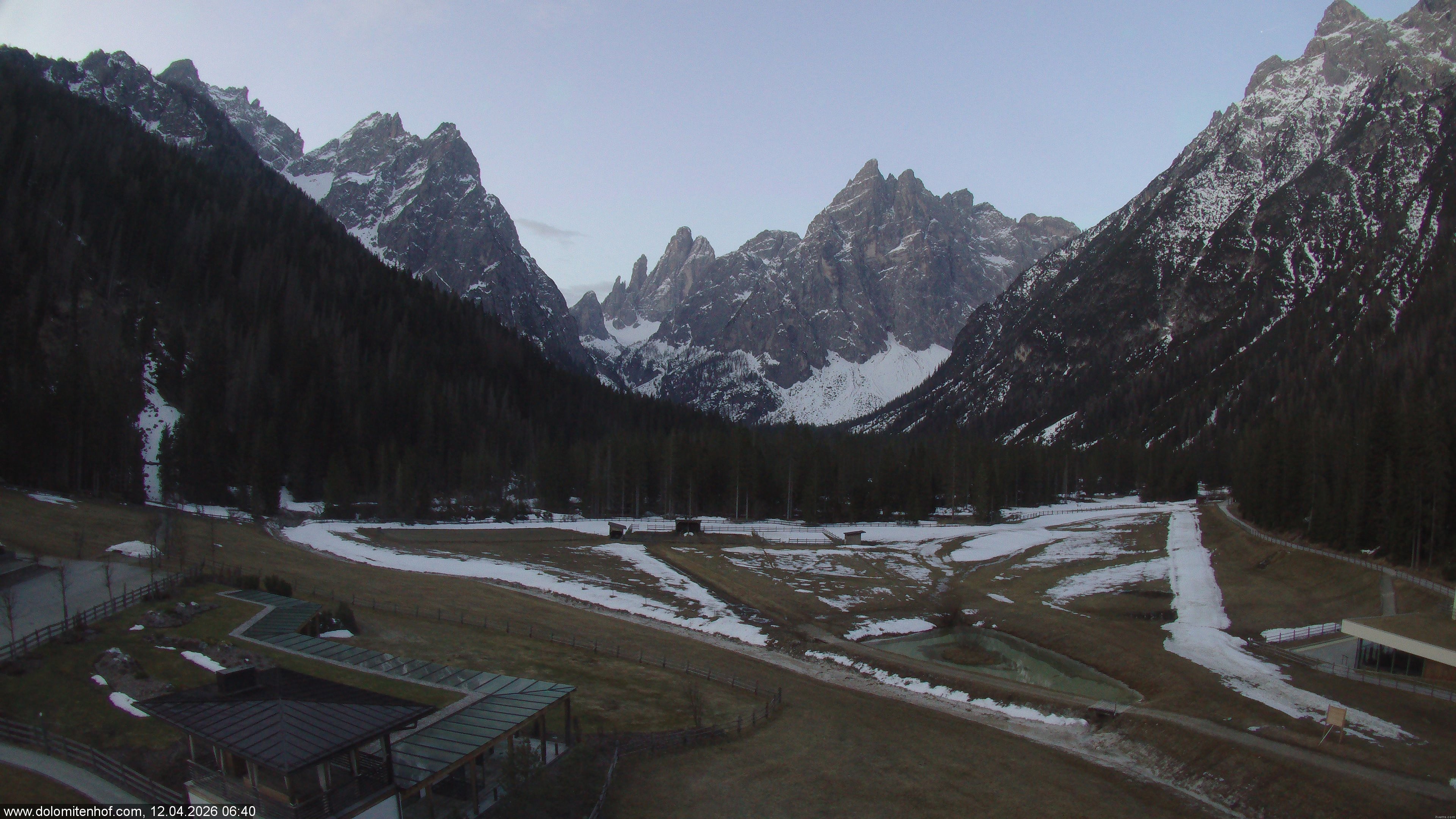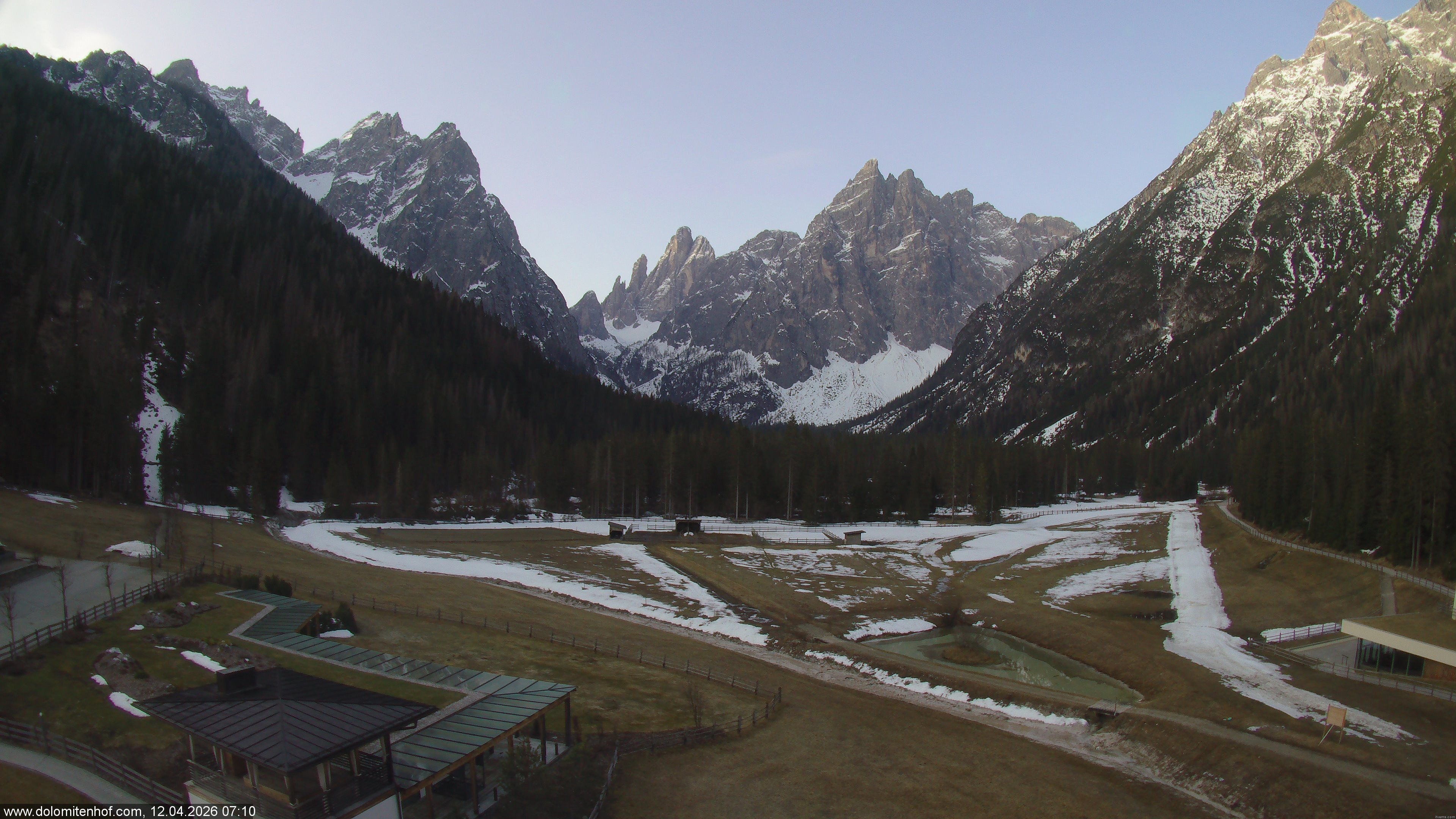 The webcam at the Dolomitenhof hotel in Sexten offers a view of the cross-coutry skiing trail.