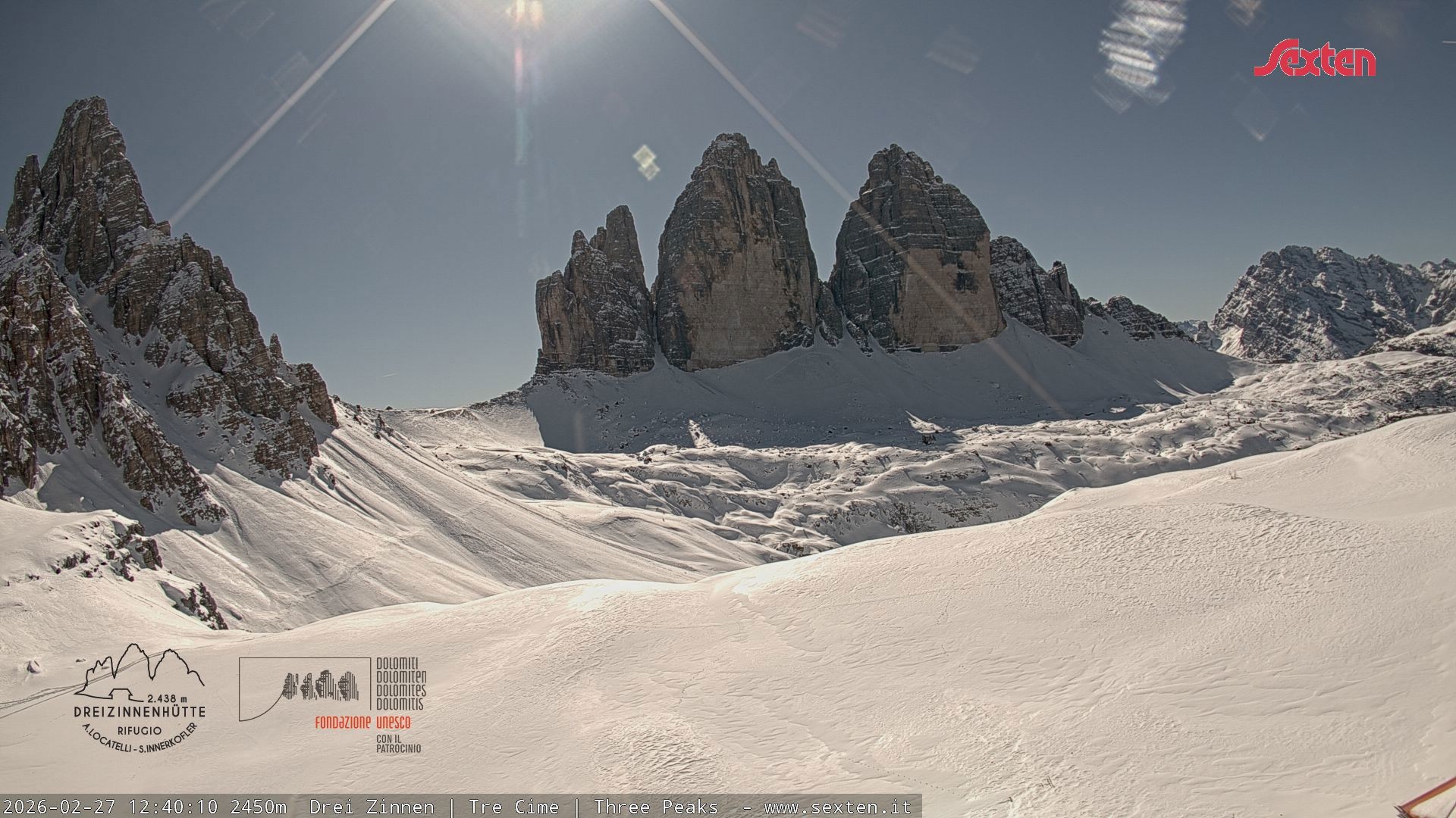 Archived webcam image showing Dolomites: Mountain Hut Antonio Locatelli on 26 Feb 2026 at 14:17 13:00