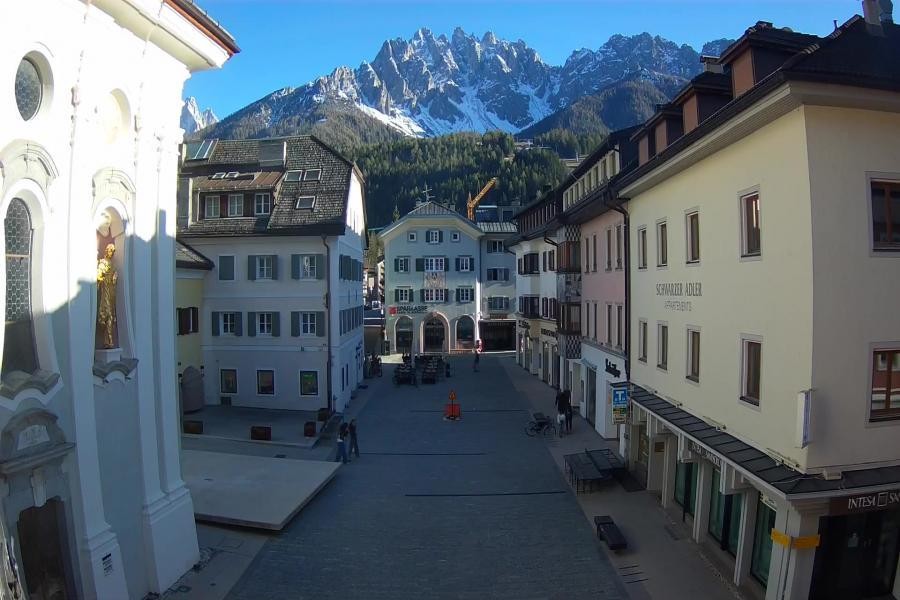 Webcam at the town square 'St. Michaelsplatz' in Innichen (San Candido) facing Haunold mountain.