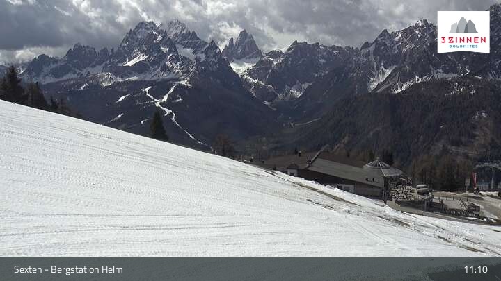 Archived webcam image showing Sextner Dolomites Skiing Mountain Helm on 20 Apr 2026 at 11:06 10:00