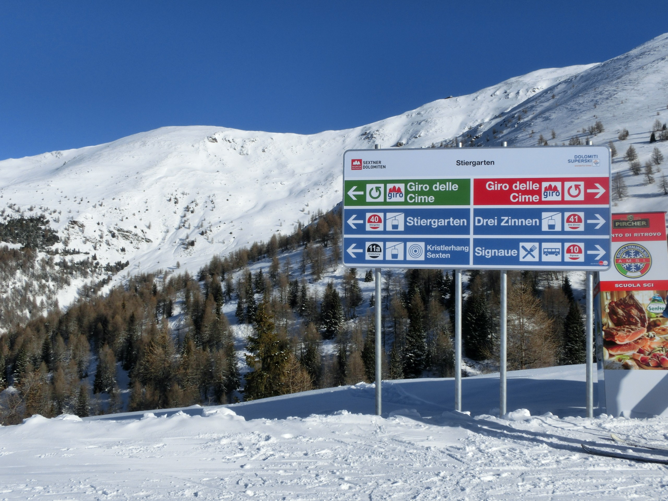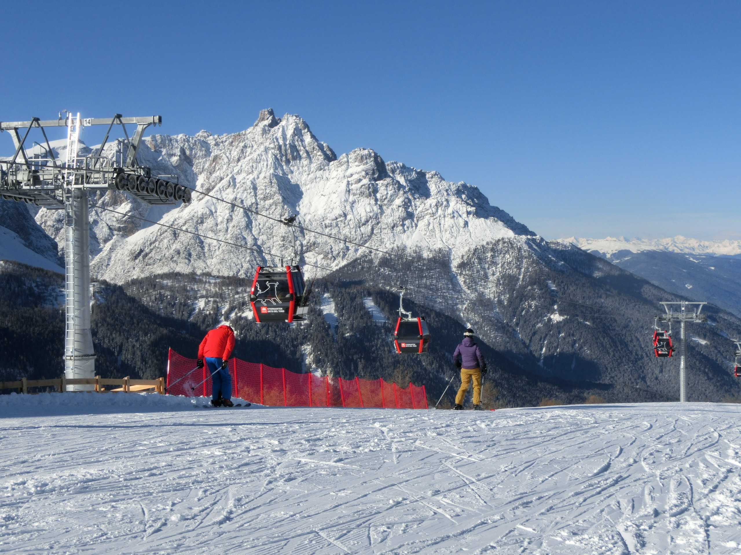 We were certainly impressed with the state-of-the-art infrastructure in the Sexten Dolomites. In particular, the connection between Helm and Rotwand built in the season 2014/15 shows that there has been plenty of investment in the ski area. Two comfortable gondola lifts now transport skiers to the Stiergarten area, while the valley station in Vierschach was also completely redeveloped (including a ski school, ski rental, lockers and restaurant). The other modern lifts underline the overall positive impression.