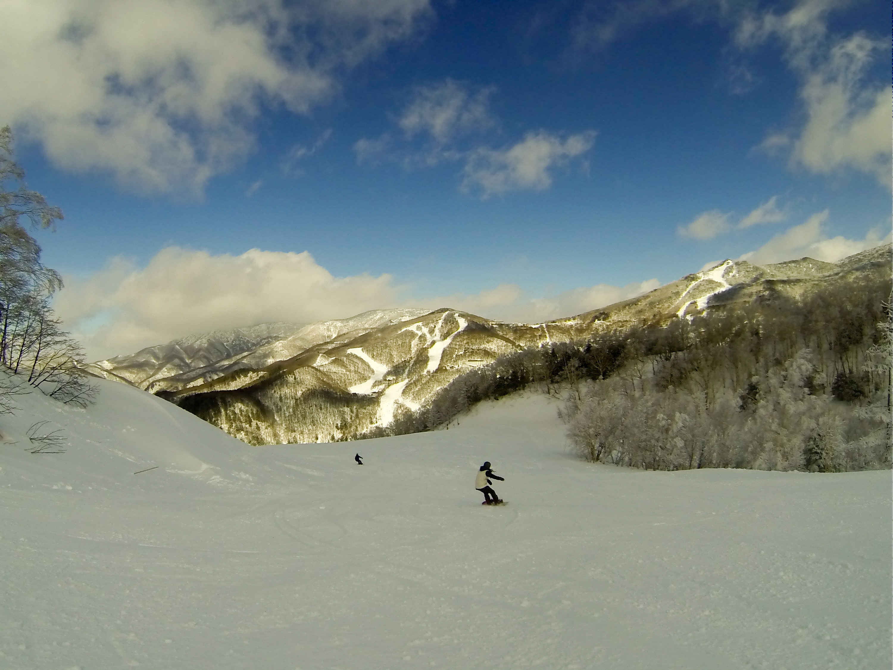 The ski area spans a long valley running north-south from Yokoteyama in the south to Okushigakogen in the north. All of the resorts to the north of Maruike and Sun Valley are interlinked – i.e. Okushigakogen, Yakebitaiyama, Ichinose, Tanne, Takamagahara Mammoth, Higashidateyama, Terakoya, Nishidateyama, Hoppo Bunadaira, Giant and Hasuike. Exploring the two main areas to the south – Kumanoyu and Yokoteyama – will definitely require riding the shuttle bus down the valley, as they are unreachable on piste. This interconnected layout definitely gives the ski area a European flavour, and it’s a truly exhilarating feeling exploring from one area into the next.