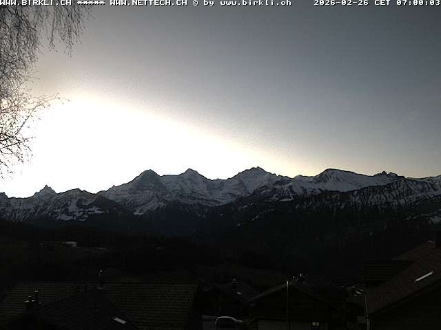 Archived webcam image showing Beatenberg - Jungfrau Group on Feb 26, 2026 at 6:48 AM 12:00 AM