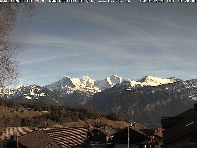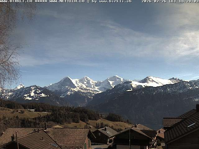 The webcam offers the view from swiss village Beatenberg towards Jungfrau Group (Eiger, Mönch and Jungfrau)