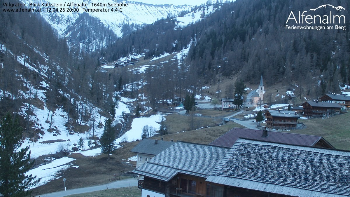 Archived webcam image showing Villgraten on 12 Apr 2026 at 20:39 Latest