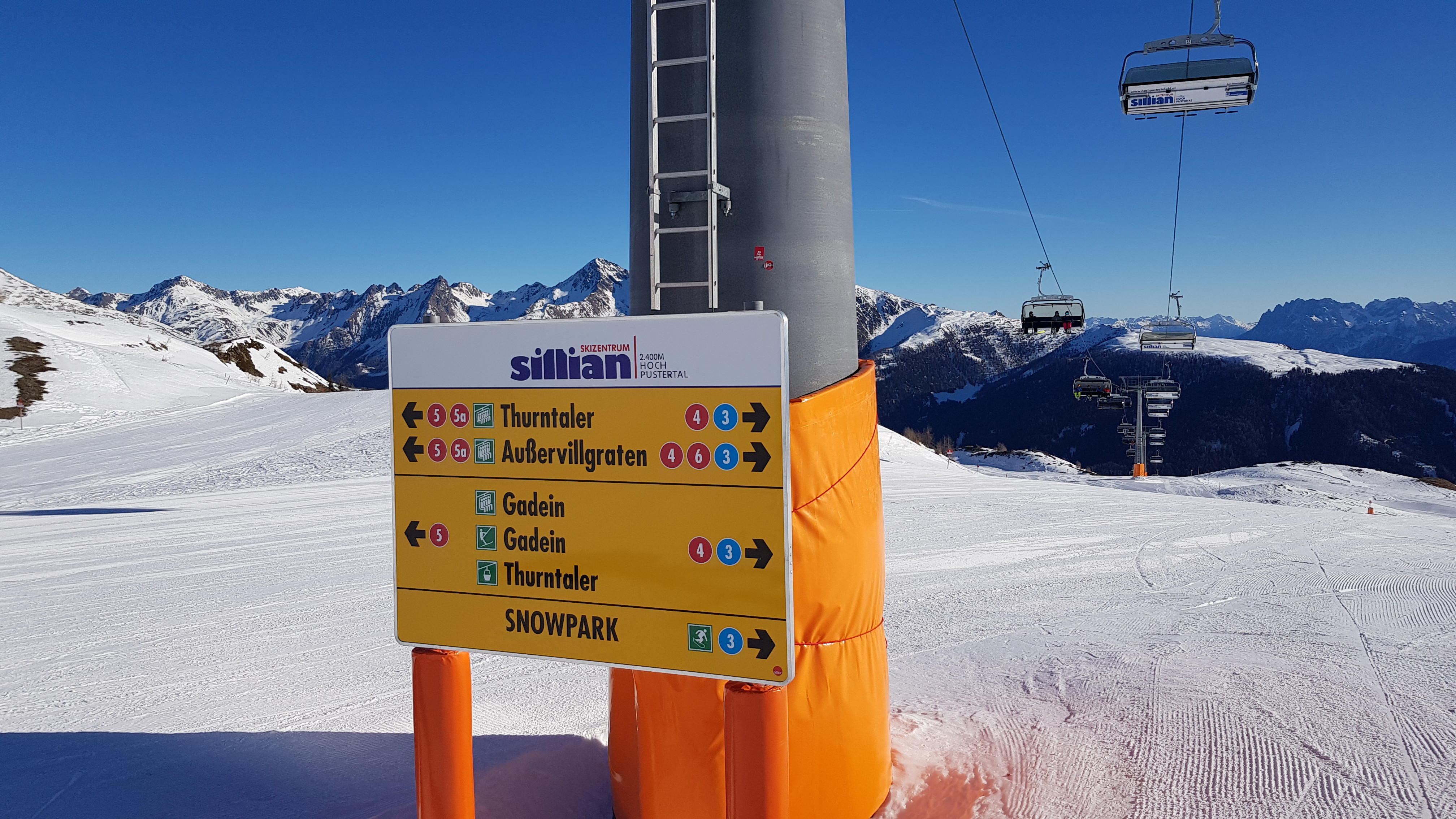 The Sillian ski area may not be the largest in the Alps, but the kilometers of slopes are accessible with mostly modern lifts. If you don't want to, you don't have to use a single, unpopular drag lift in the entire ski area. The three chairlifts Thurntaler (6-seater chairlift, detachable and heated), Außervillgraten (4-seater chairlift) and the Gadein chairlift (4-seater seselift) as well as the Thurntaler gondola lift bring visitors quickly and easily from the valley up to the Thurntaler, with its 2,407 meters the highest point of the ski area.