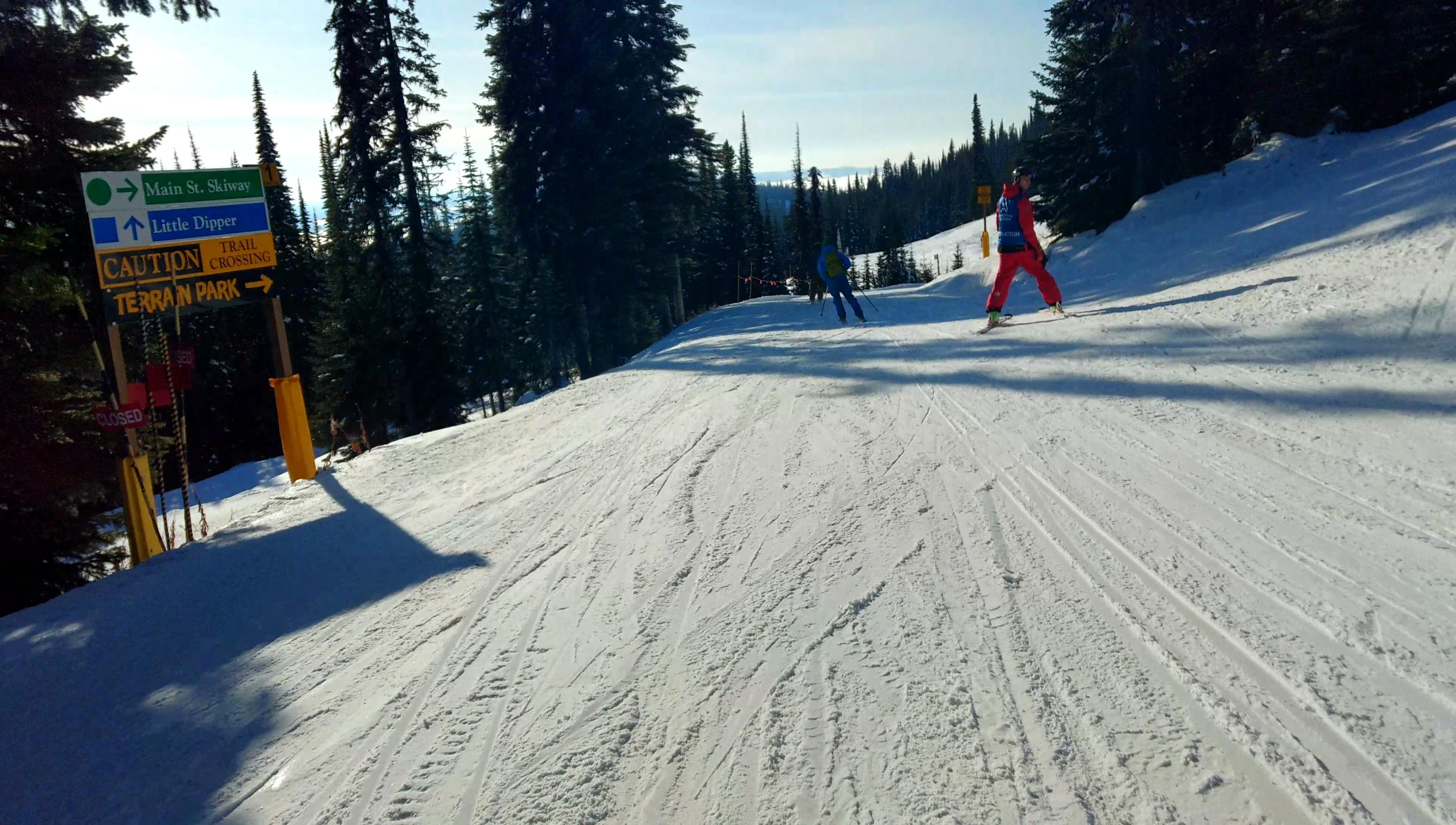 Small Lane is located next to the main terrain park and is best for beginners to learn how to shred and progress. Ride-ons, lip features, boxes, jumps and other features are what to expect here. The entrance to the terrain park is located on lower Big Dipper.