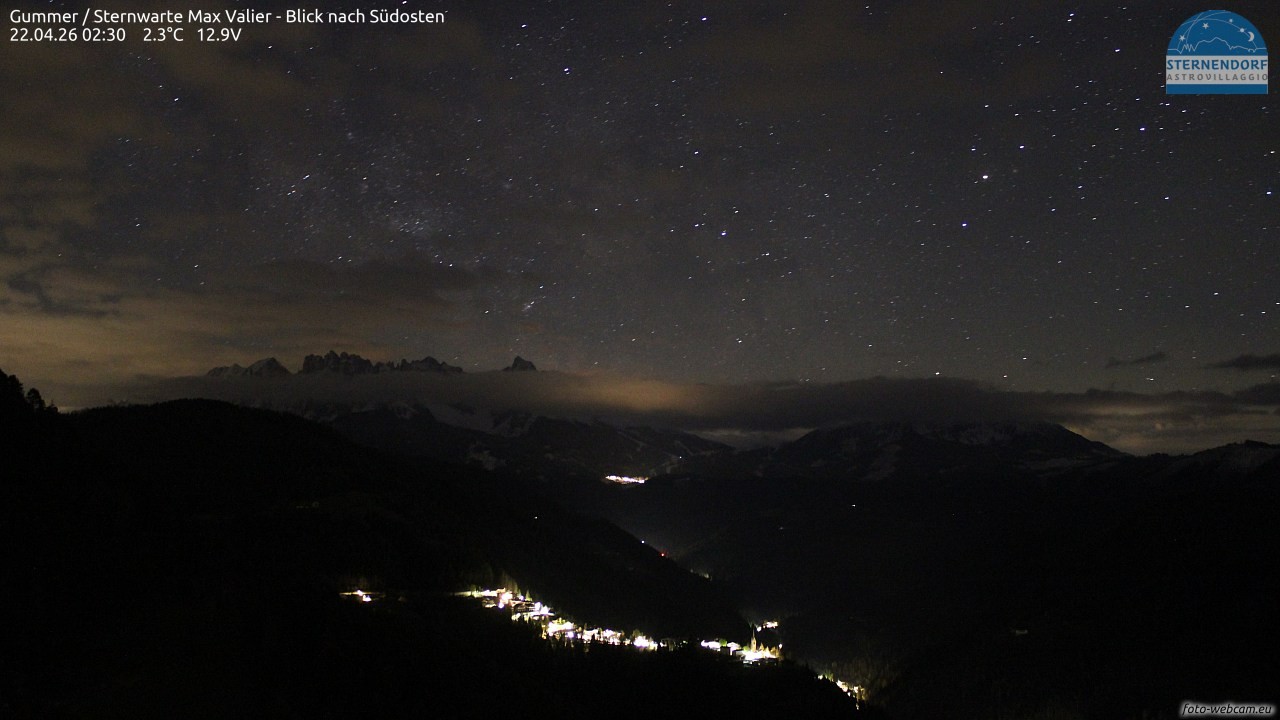 Archived webcam image showing Gummer - Observatory Max Valier on 22 Apr 2026 at 04:20 03:00