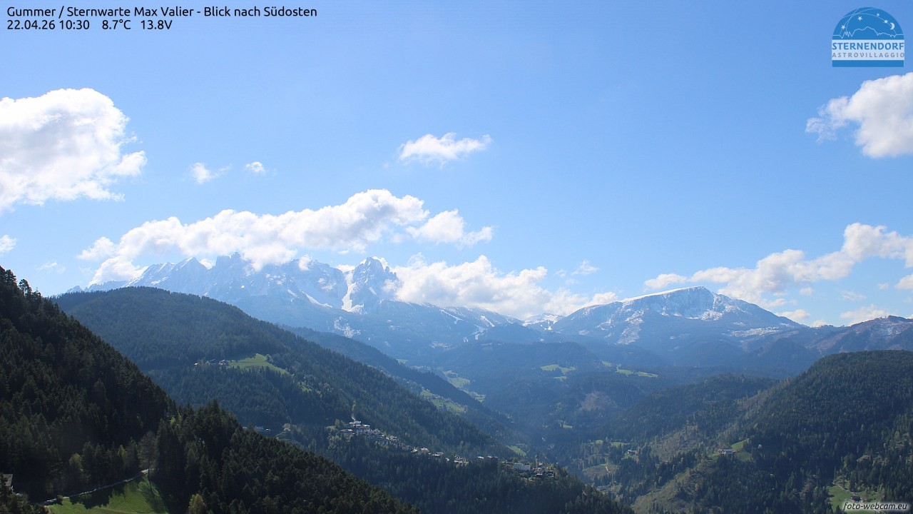 Archived webcam image showing Gummer - Observatory Max Valier on 22 Apr 2026 at 10:20 09:00