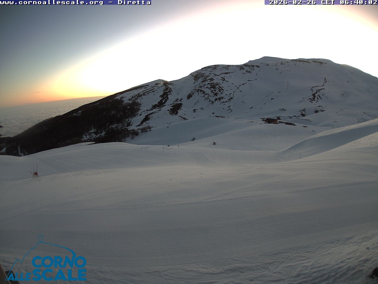 Archived webcam image showing Corno alle Scale Ski Resort - La Polla Slope on 26 Feb 2026 at 06:58 05:00